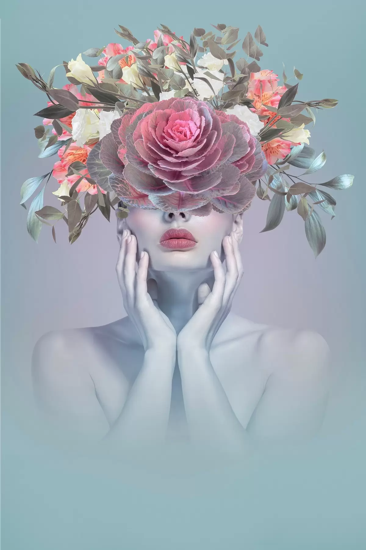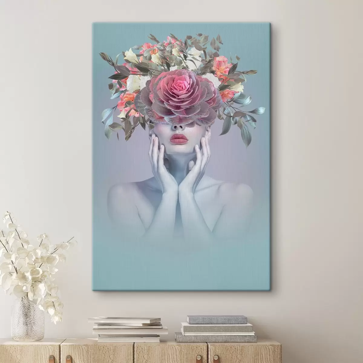Maalid Naine lilledega peas Nr s37479