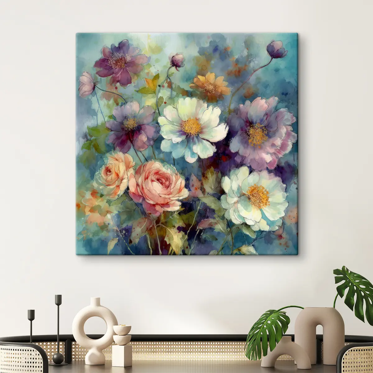 Maalid Värvikad õitsevad lilled pehmetes toonides Nr s37540