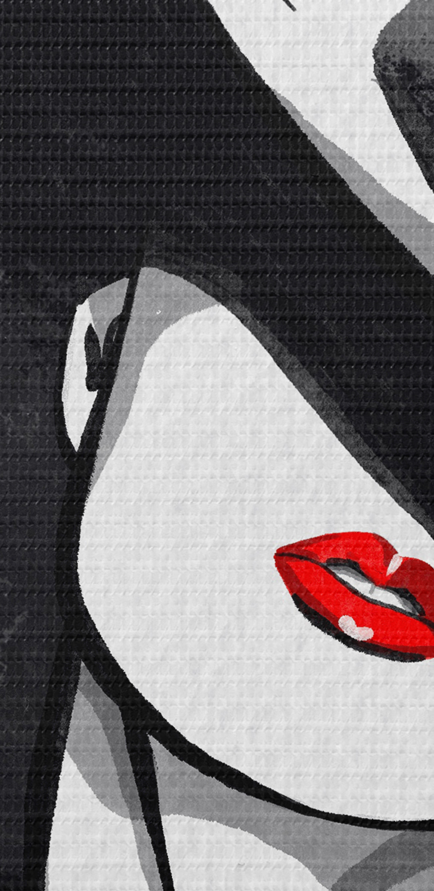 Selle lõuendi peenike niidipunus meenutab professionaalse kunstniku lõuendi pinda.