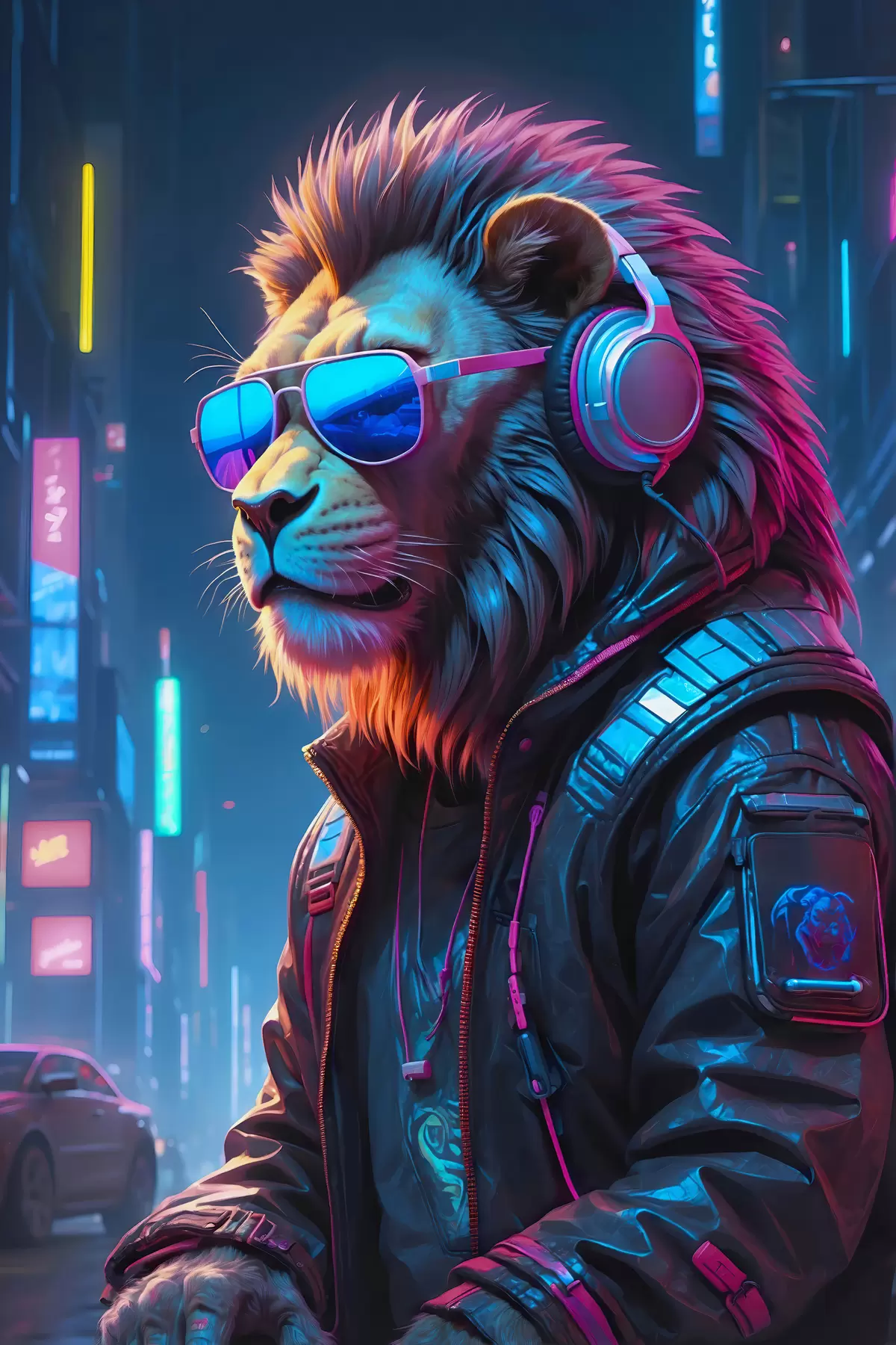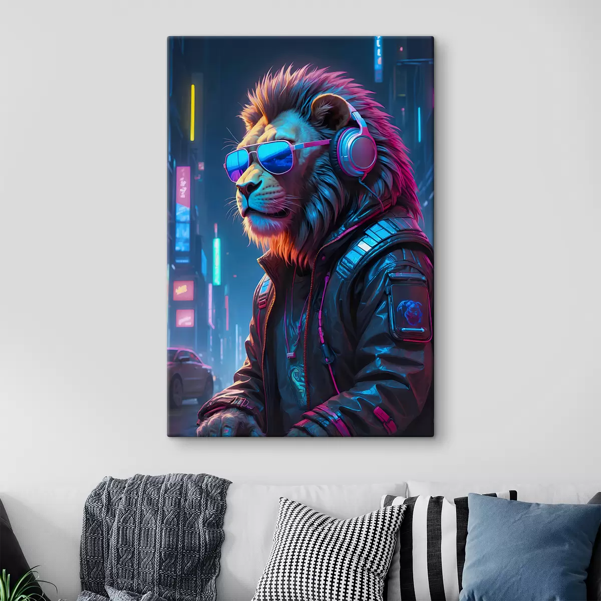 Maalid Stiilne lõvi futuristlikus linnamaastikus Nr s38169