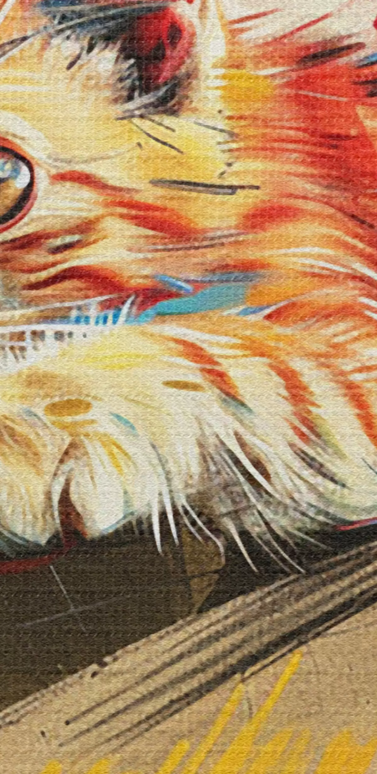 Selle lõuendi peenike niidipunus meenutab professionaalse kunstniku lõuendi pinda.
