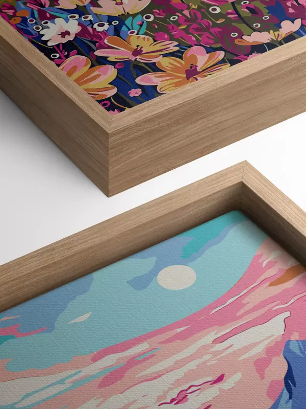 Me müüme pilte kanderaamidel - see on puidust raam, millele lõuend on pingutatud. Seda pilti ei ole vaja raamida, seda võib riputada otse seinale.