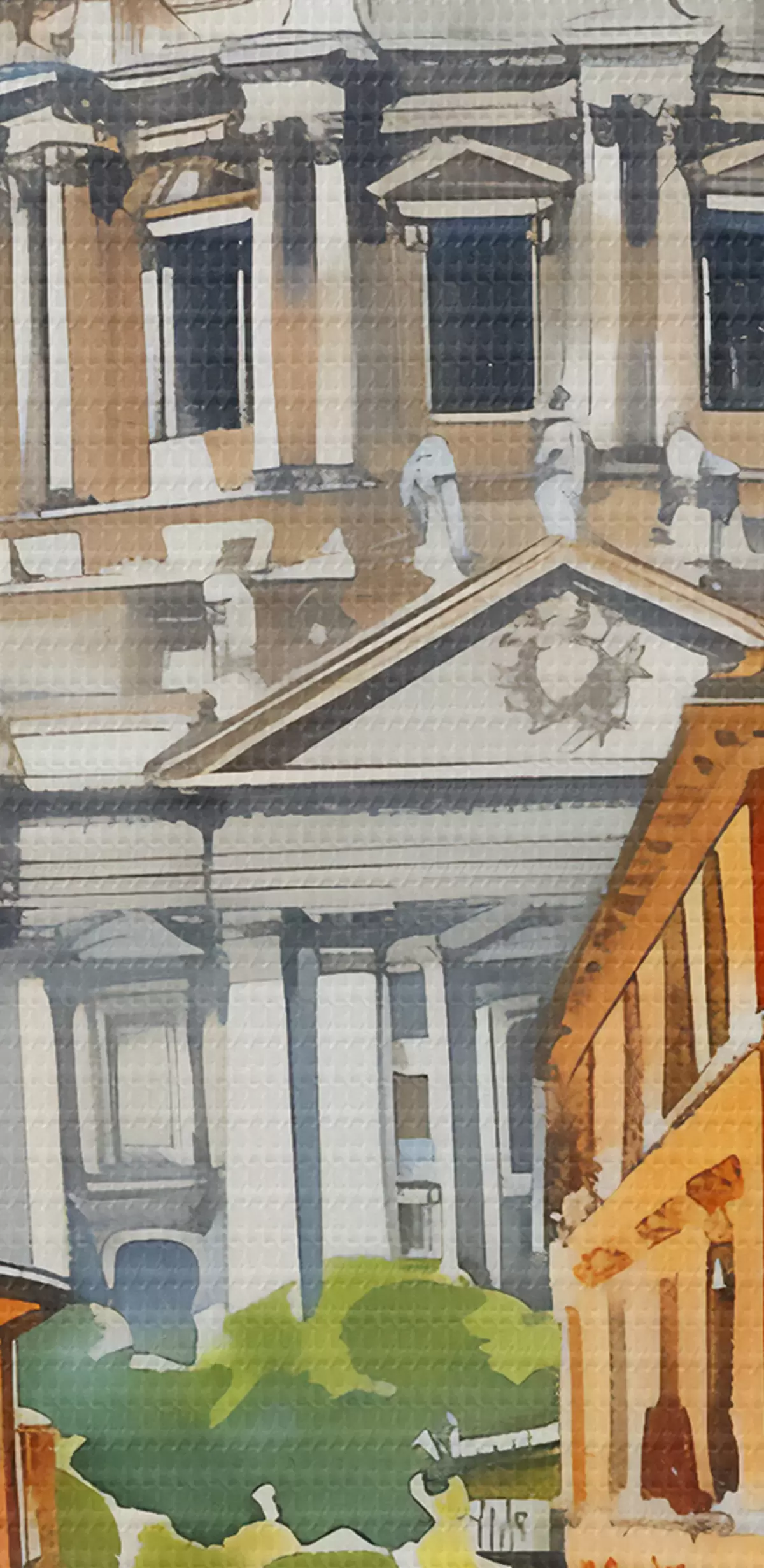 Selle lõuendi peenike niidipunus meenutab professionaalse kunstniku lõuendi pinda.