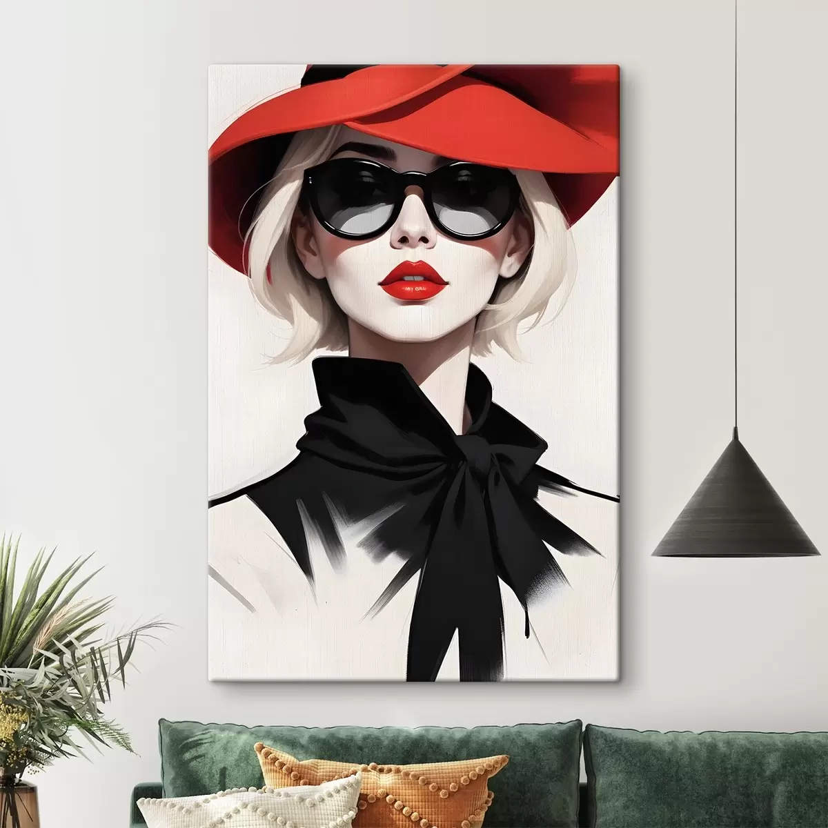 Maalid Punase mütsi ja päikeseprillidega naine Nr s38365