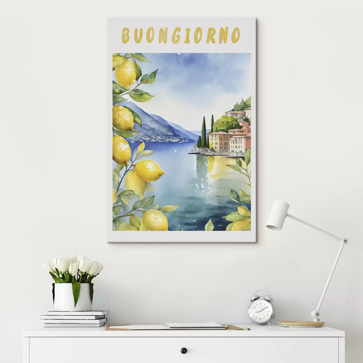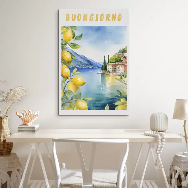 Maalid Itaalia järv, suvi, akvarell, loodusmaastik, sidrunid, linnaarhitektuur Nr s38394