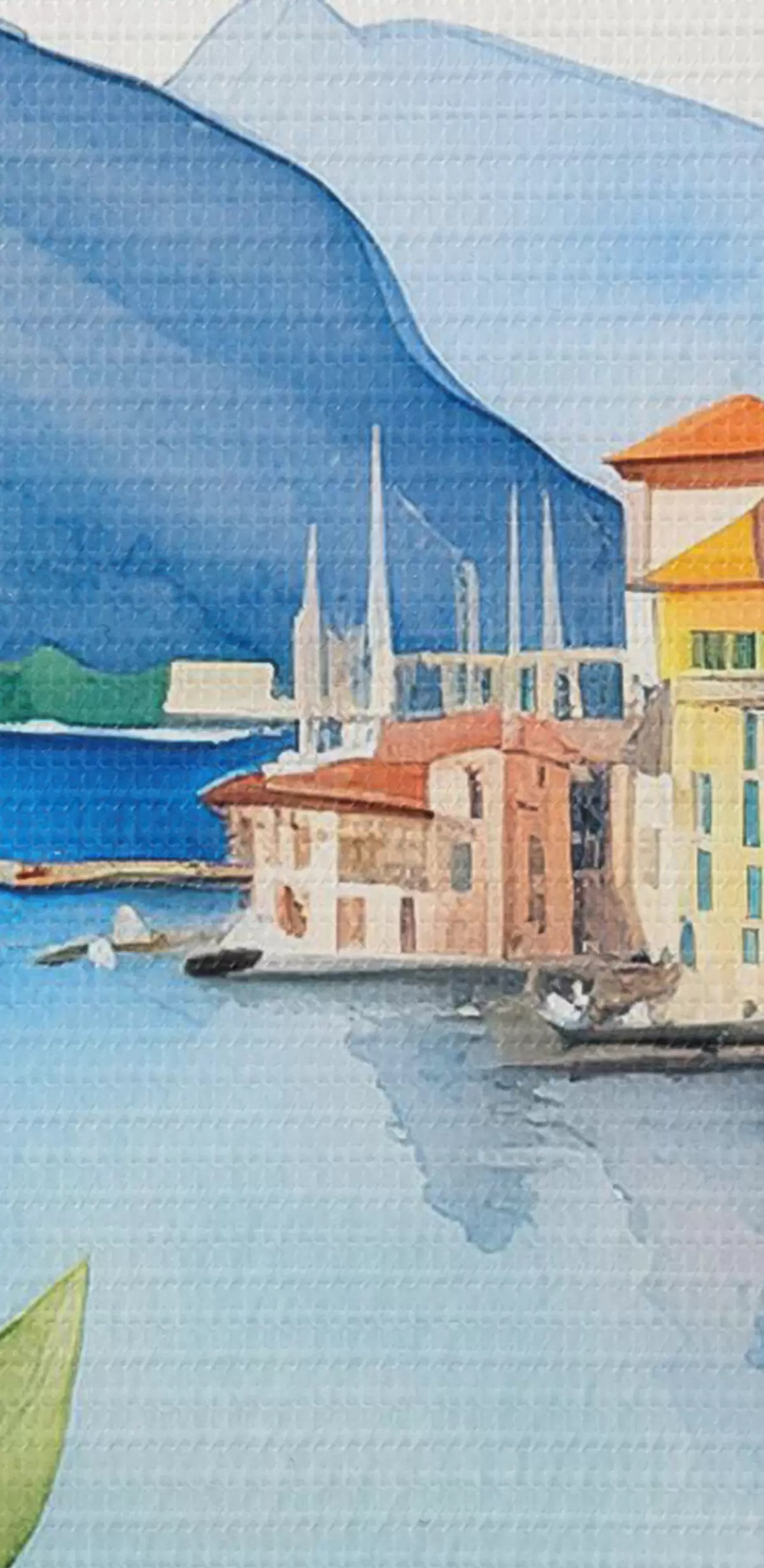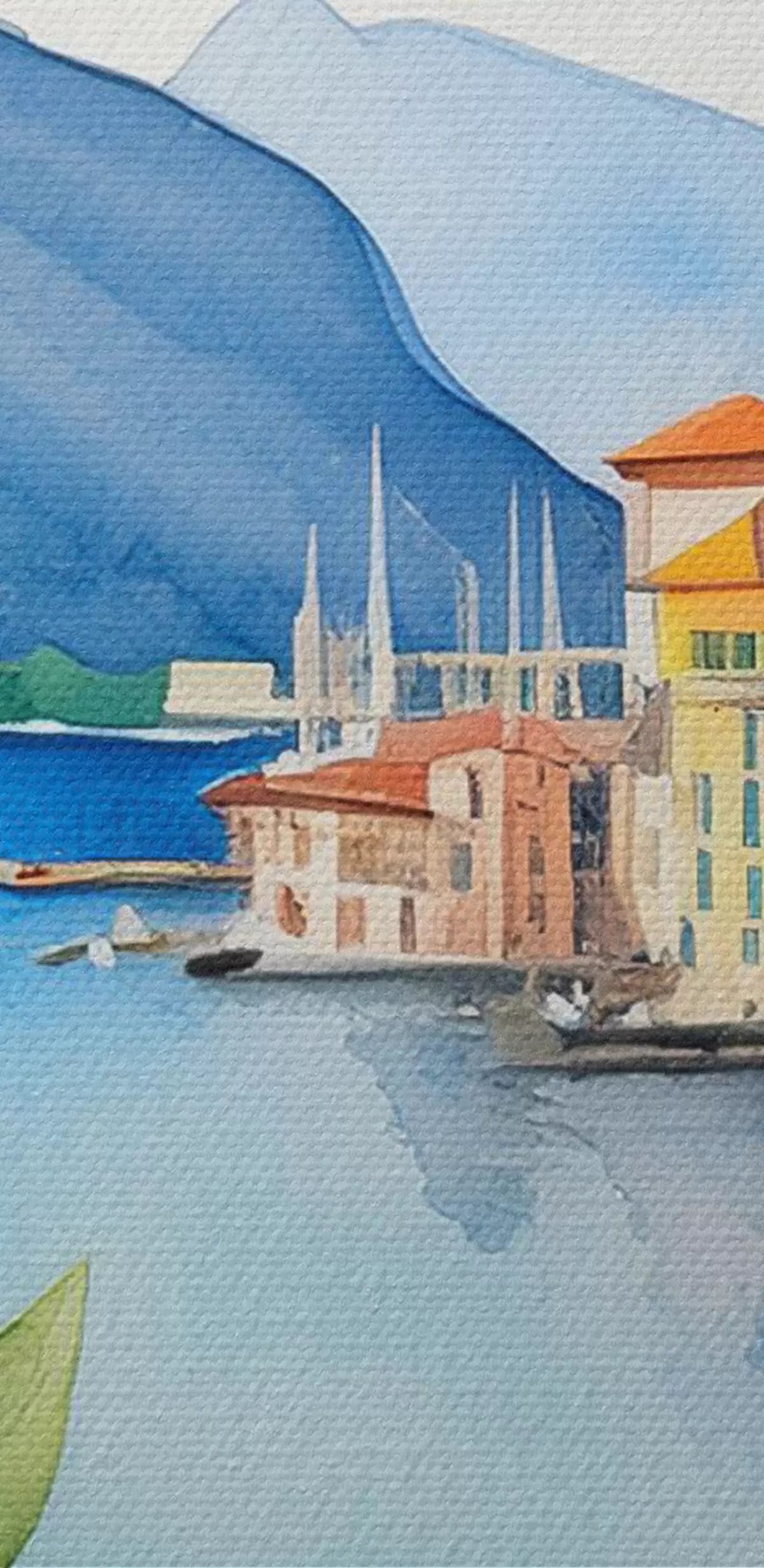 Maalid Itaalia järv, suvi, akvarell, loodusmaastik, sidrunid, linnaarhitektuur Nr s38397