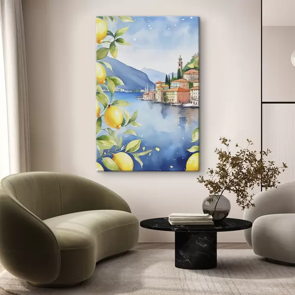 Maalid Itaalia järv, suvi, akvarell, loodusmaastik, sidrunid, linnaarhitektuur Nr s38397