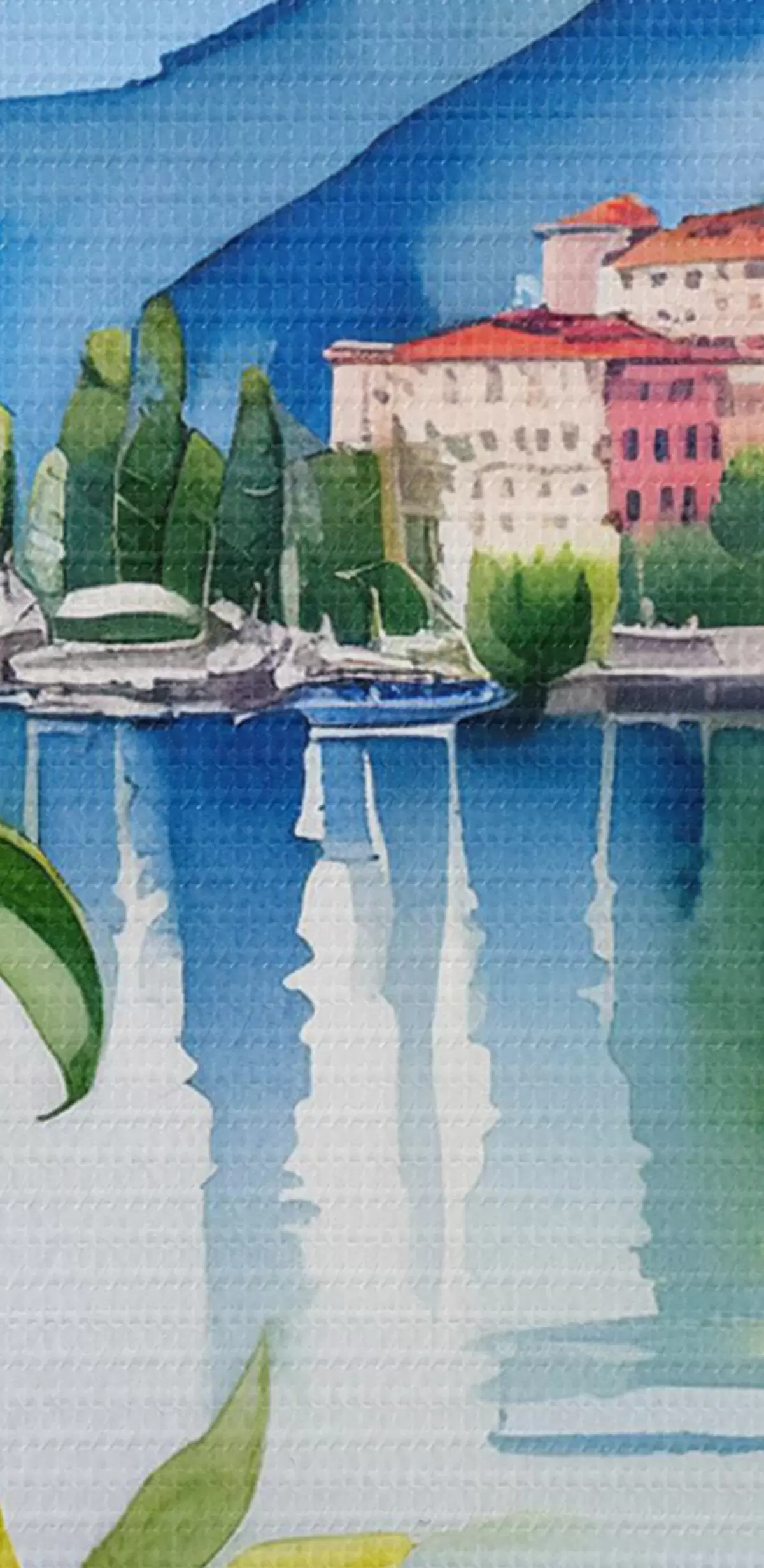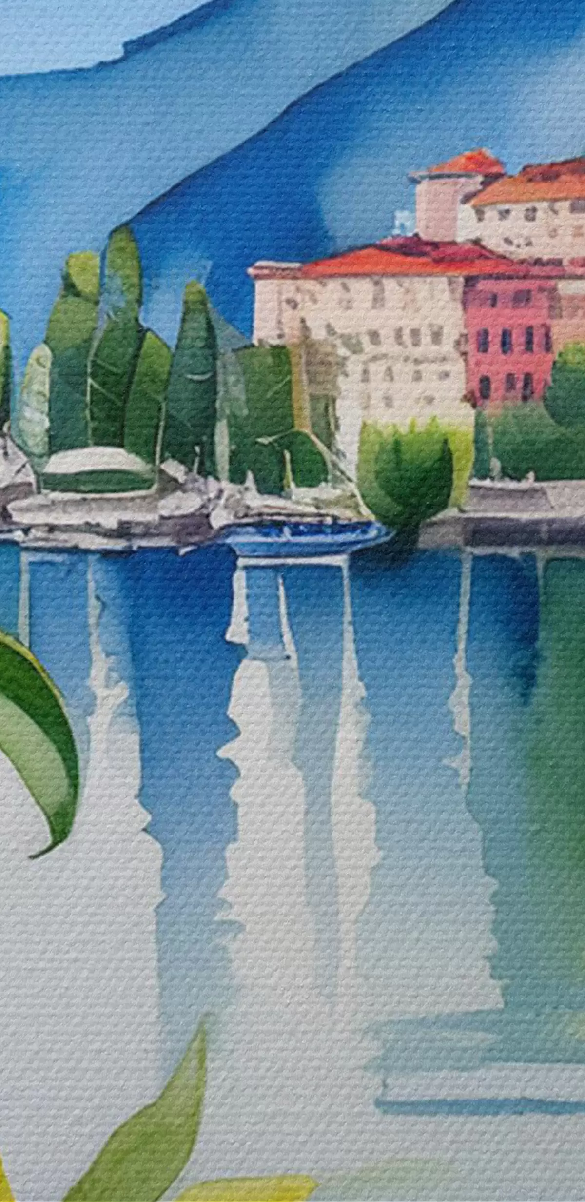 Maalid Como järv, akvarell, Itaalia, suvi, mäed, sidrunipuu, meri, vanalinn Nr s38398