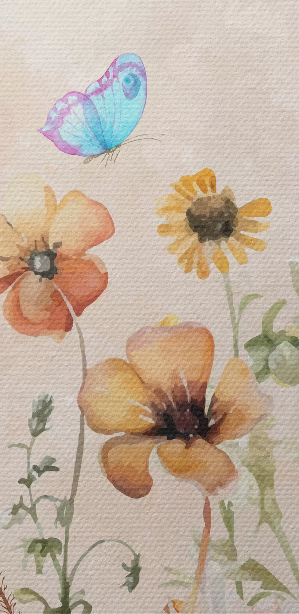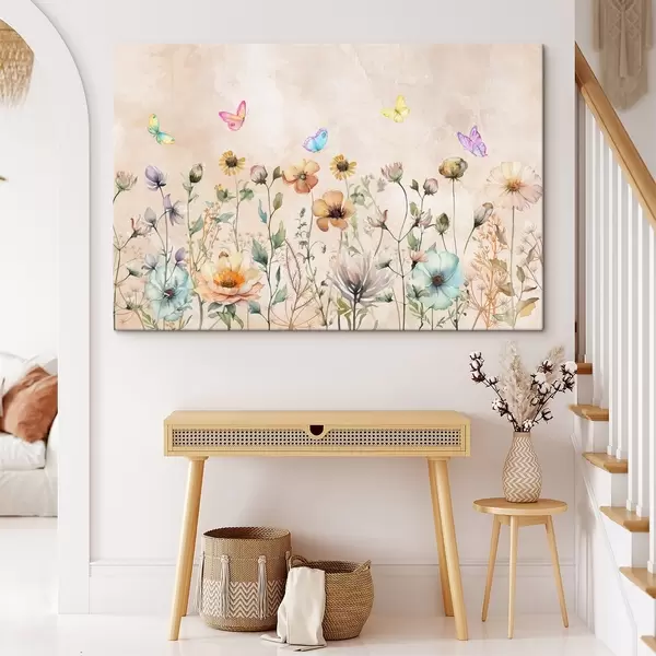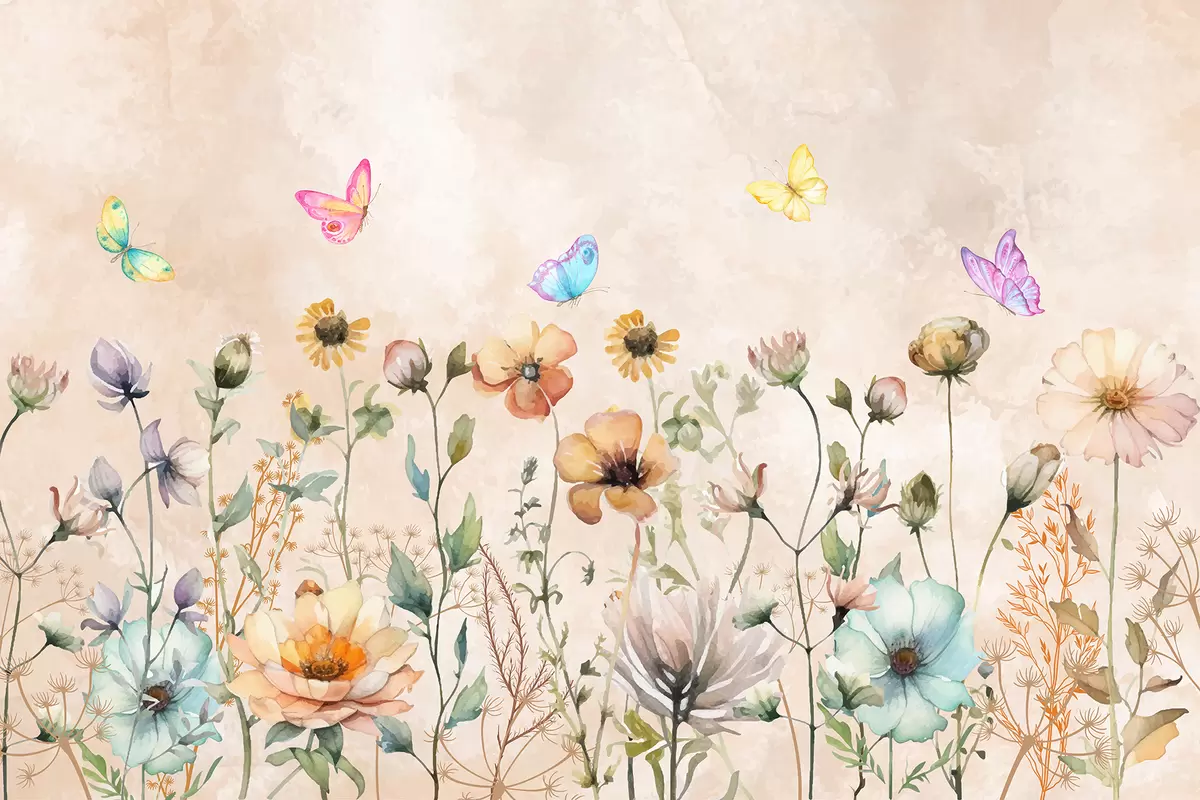 Maalid akvarellidega põllulilled, säravad liblikad, pastellid Nr s38441