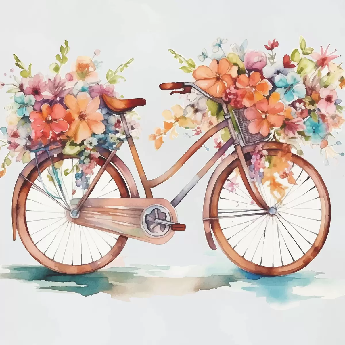 Maalid erksate värvidega jalgratas, akvarellvärviga Nr s38447