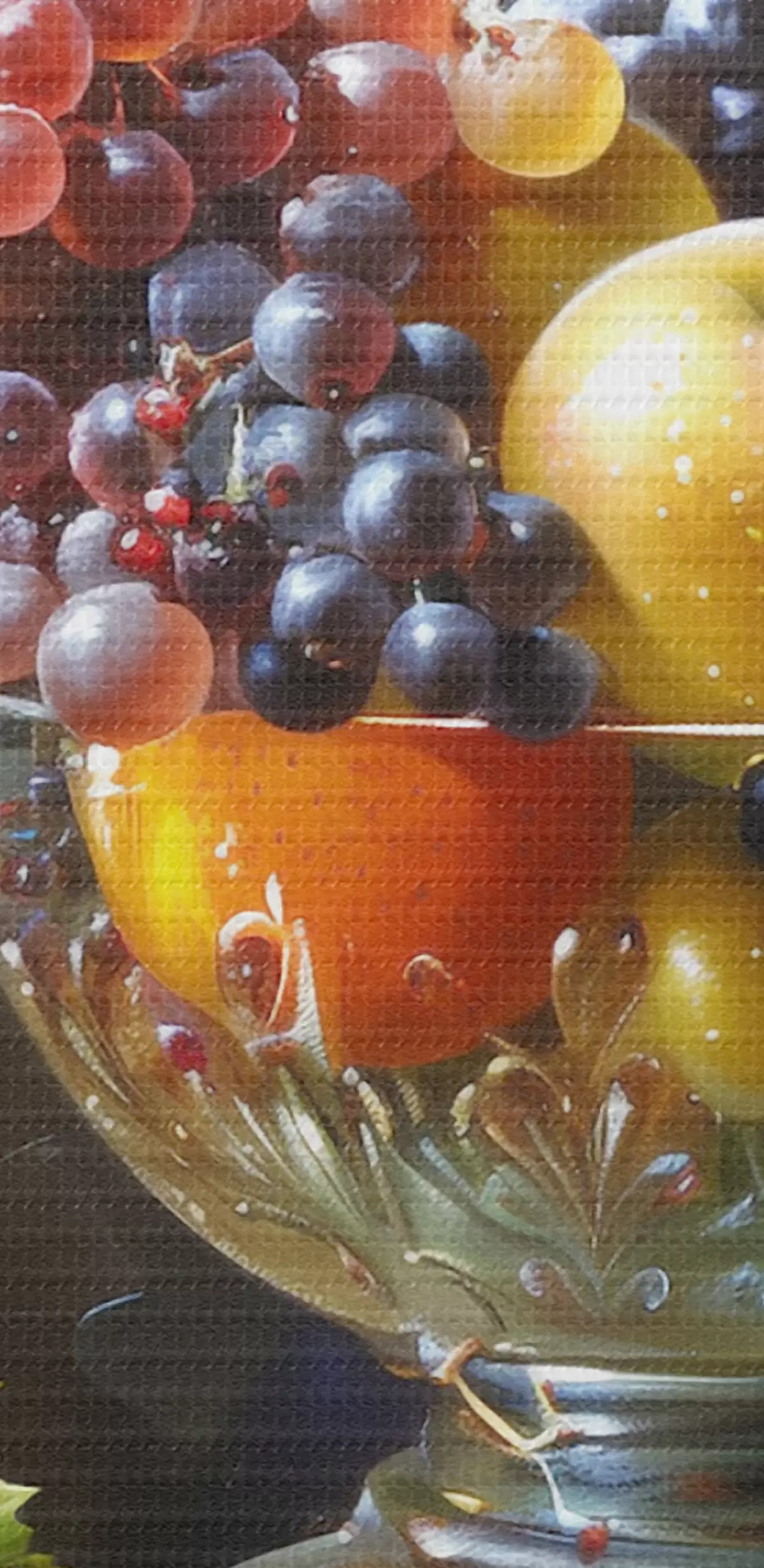 Selle lõuendi peenike niidipunus meenutab professionaalse kunstniku lõuendi pinda.
