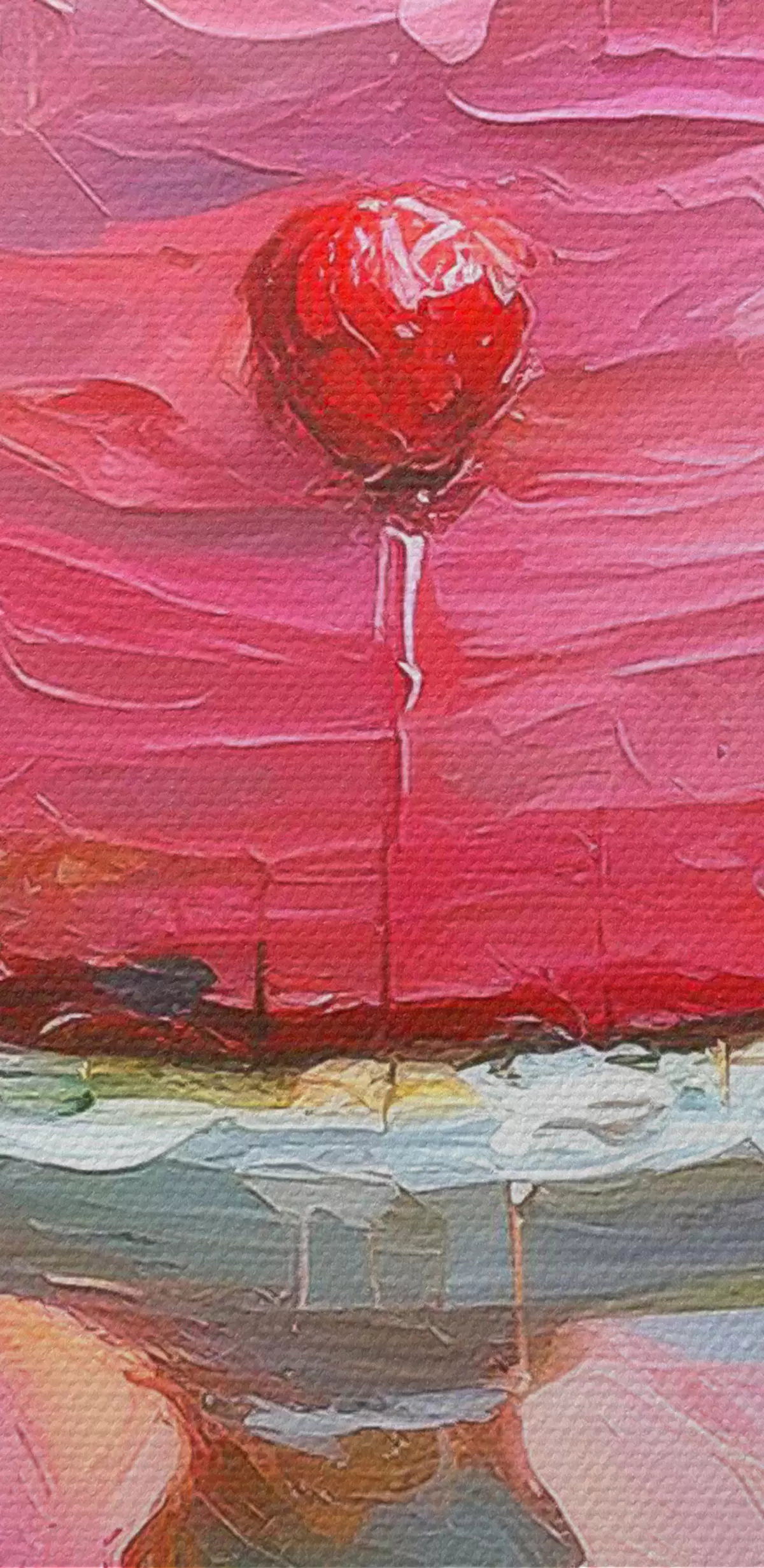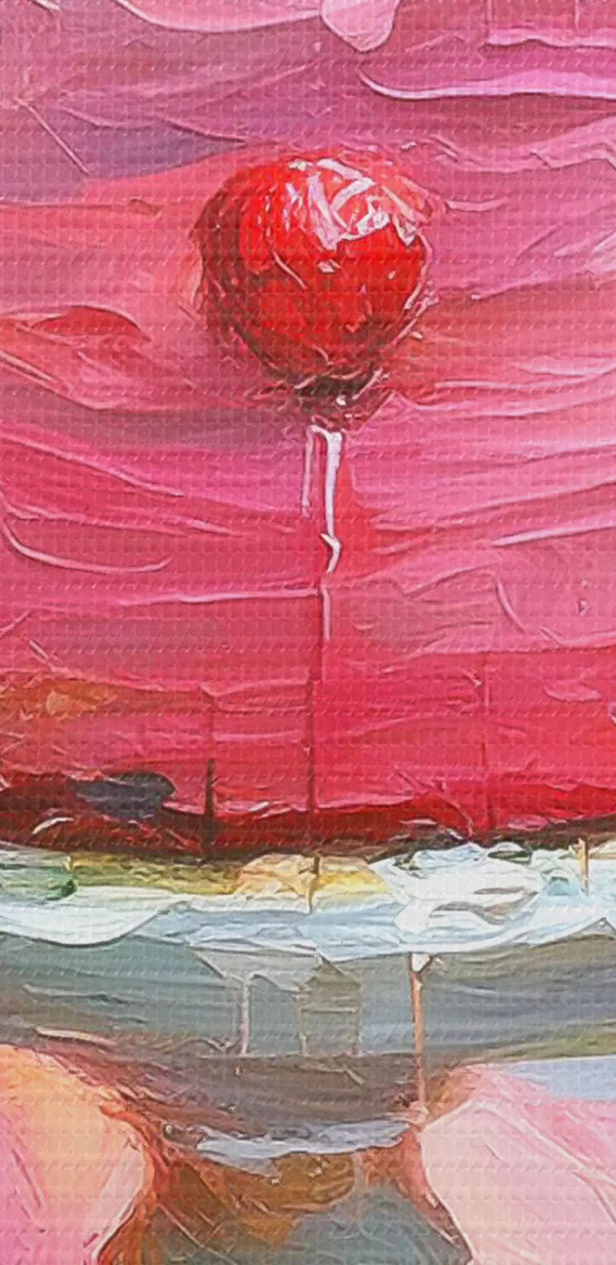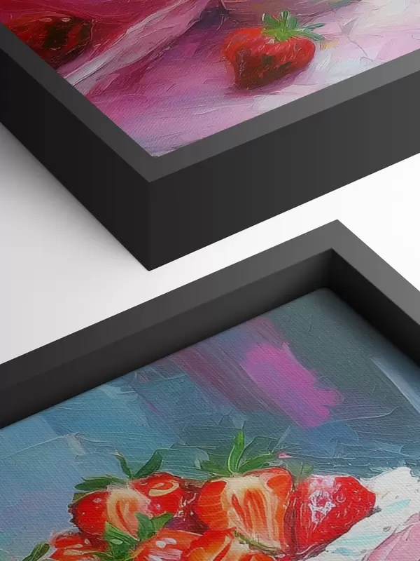 Maalid Maasikatort kreemiga, õlivärv, suured pintslitõmbed, suvised marjad, roosad värvid Nr s38499