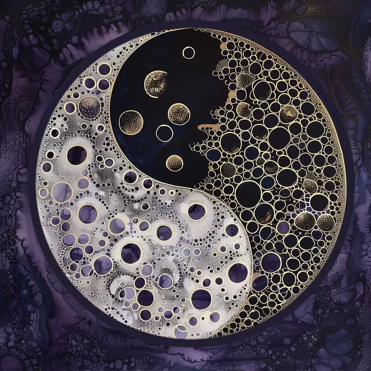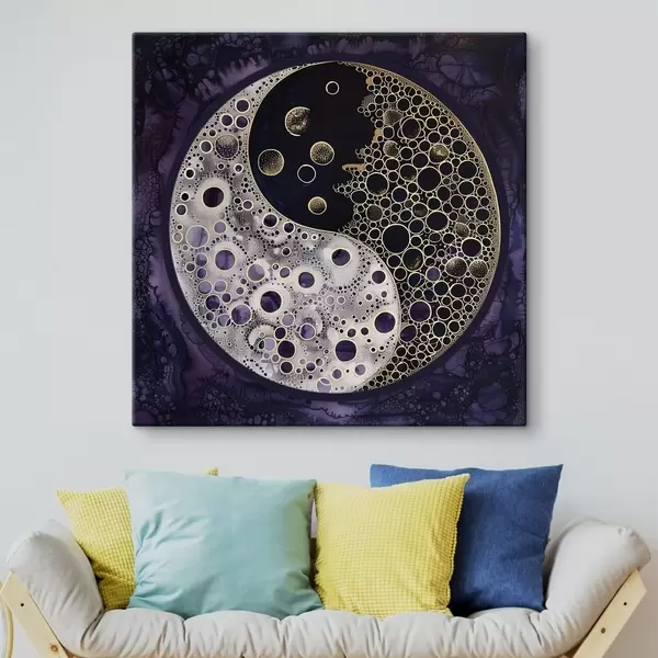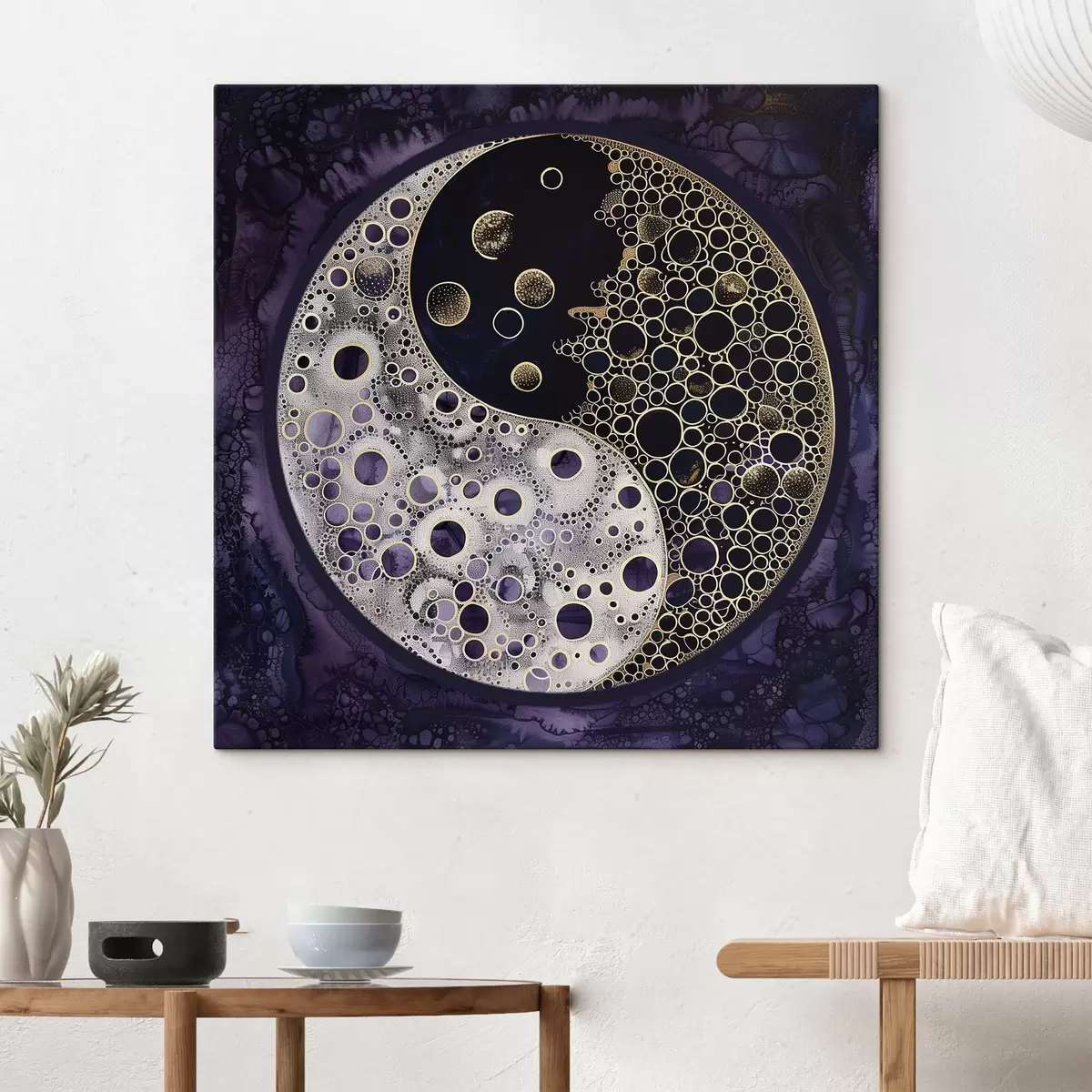 Maalid Yin ja yang sümbol lillal taustal Nr s38535