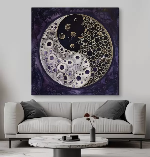 Maalid Yin ja yang sümbol lillal taustal Nr s38535