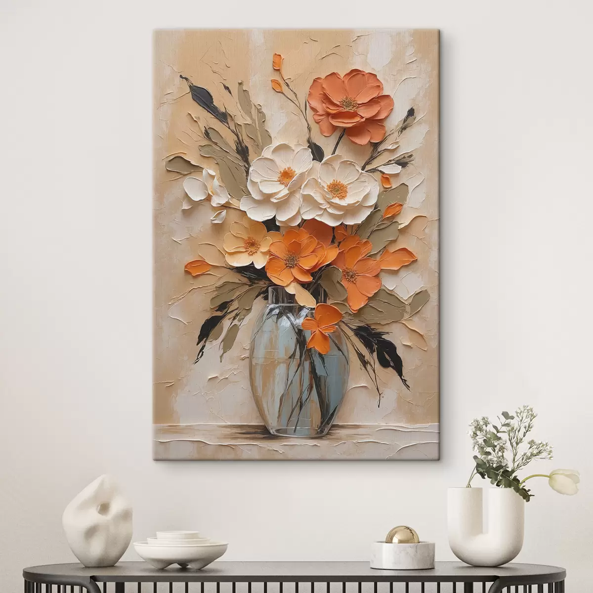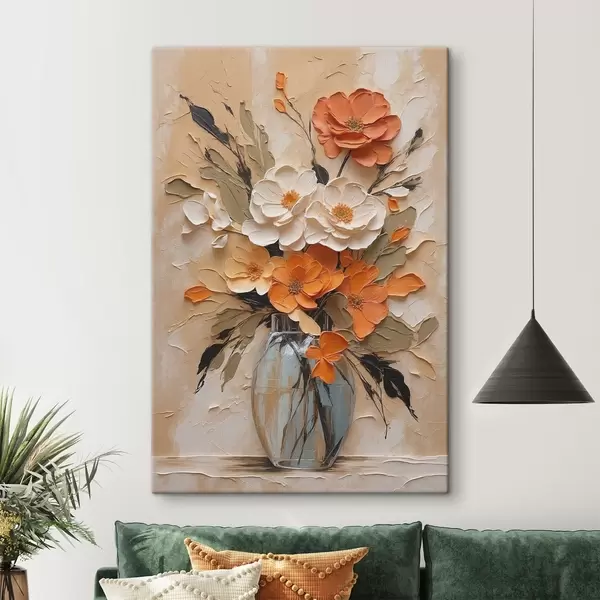 Maalid Lilled vaasis õlis beežil taustal Nr s38673