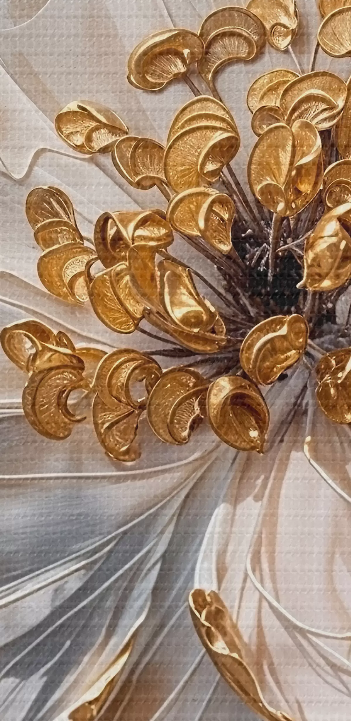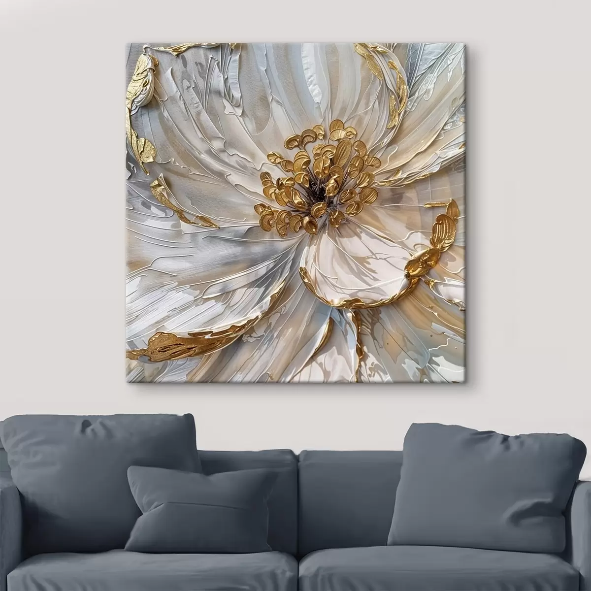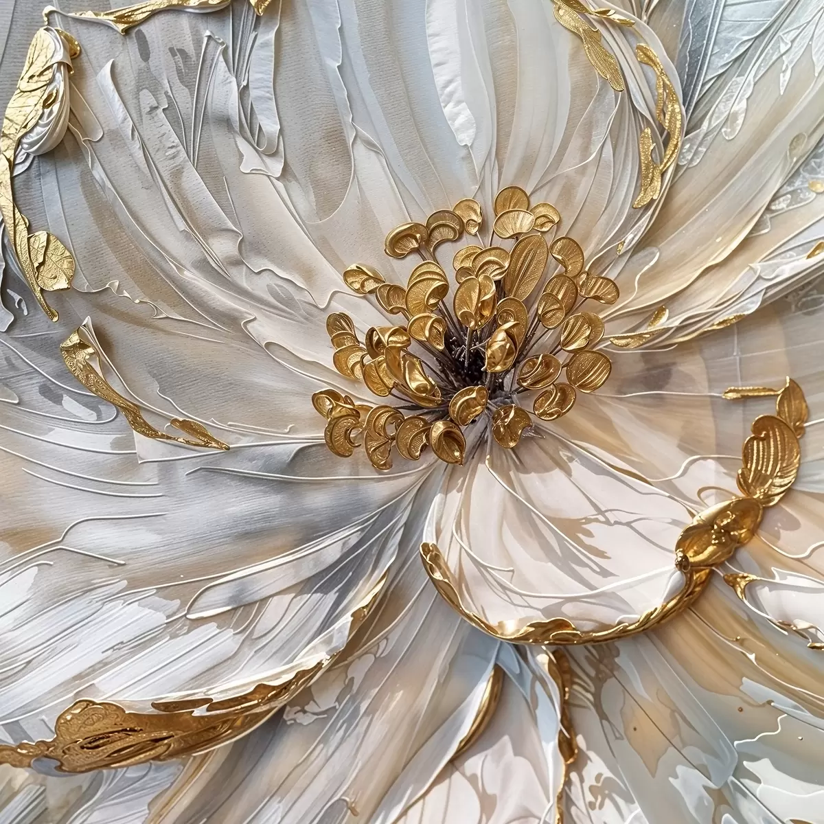Maalid Lähivõte suurest valgest lillest, mille keskel on tolmukad, õlimaali kunstidekoor Nr s38755