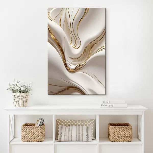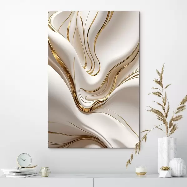 Maalid Voolavad kuldsed ja valged abstraktsed kujundid, mis meenutavad vedelat või sulametalli, dünaamiline kompositsioon Nr s38767