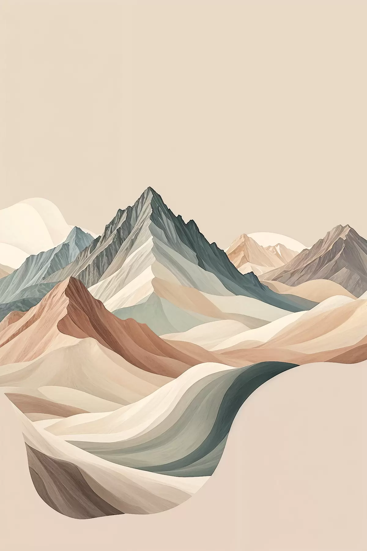 Maalid Minimalism mägimaastik kiviste tippude ja beežides mägedega Nr s38770