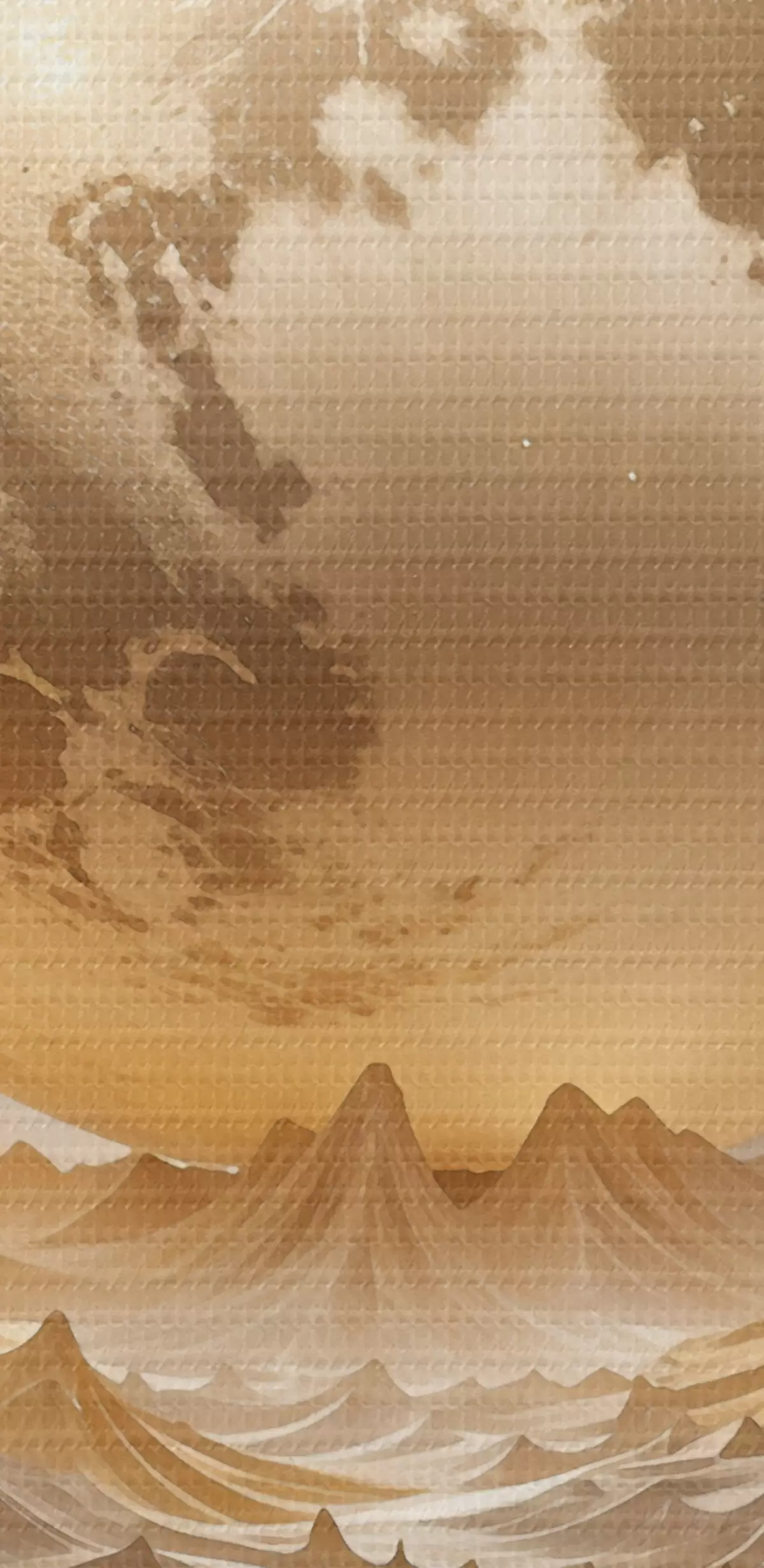 Maalid Hõõguv täiskuu kuldsete tippudega sürrealistliku mägise maastiku Nr s38775
