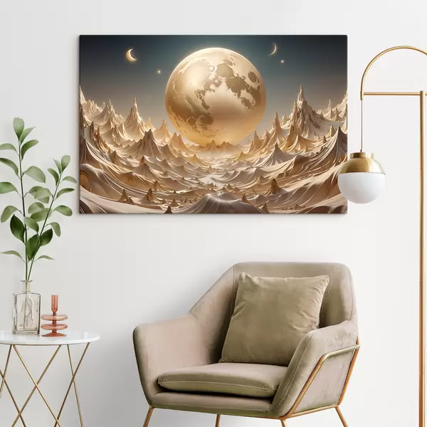 Maalid Hõõguv täiskuu kuldsete tippudega sürrealistliku mägise maastiku Nr s38775