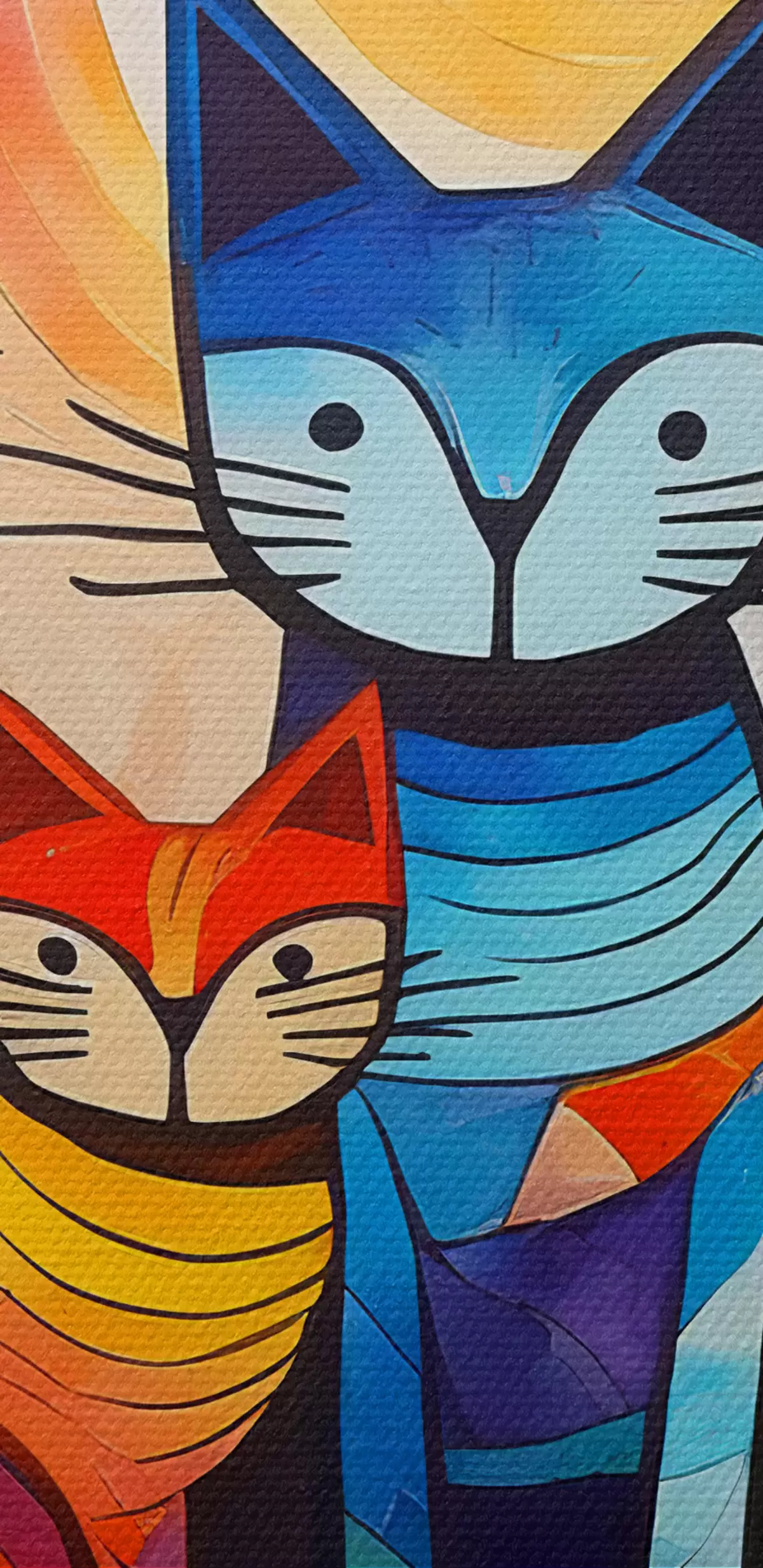 Pilt Mitmevärviline abstraktsioon huvitavate kassidega s38815