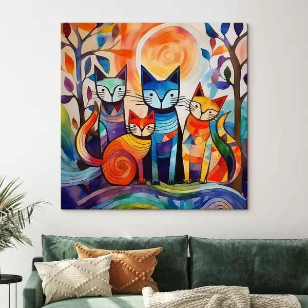 Maalid Mitmevärviline abstraktsioon huvitavate kassidega Nr s38815