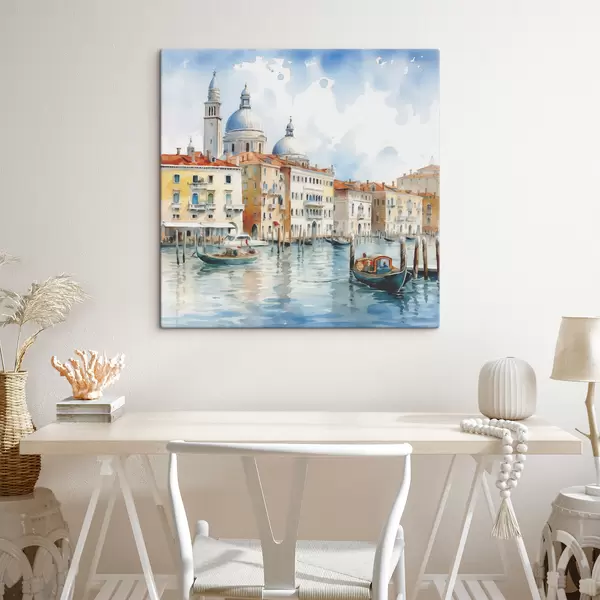 Maalid Akvarellmaastik Veneetsia, laht, jõgi, arhitektuur, maastik, paadid, gondel Nr s38908