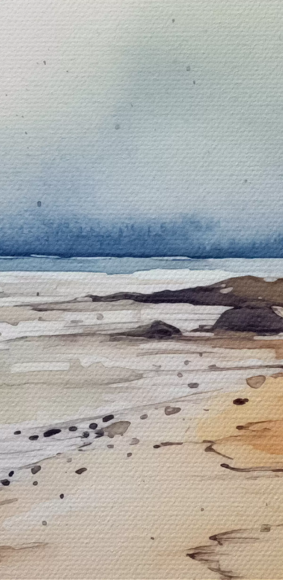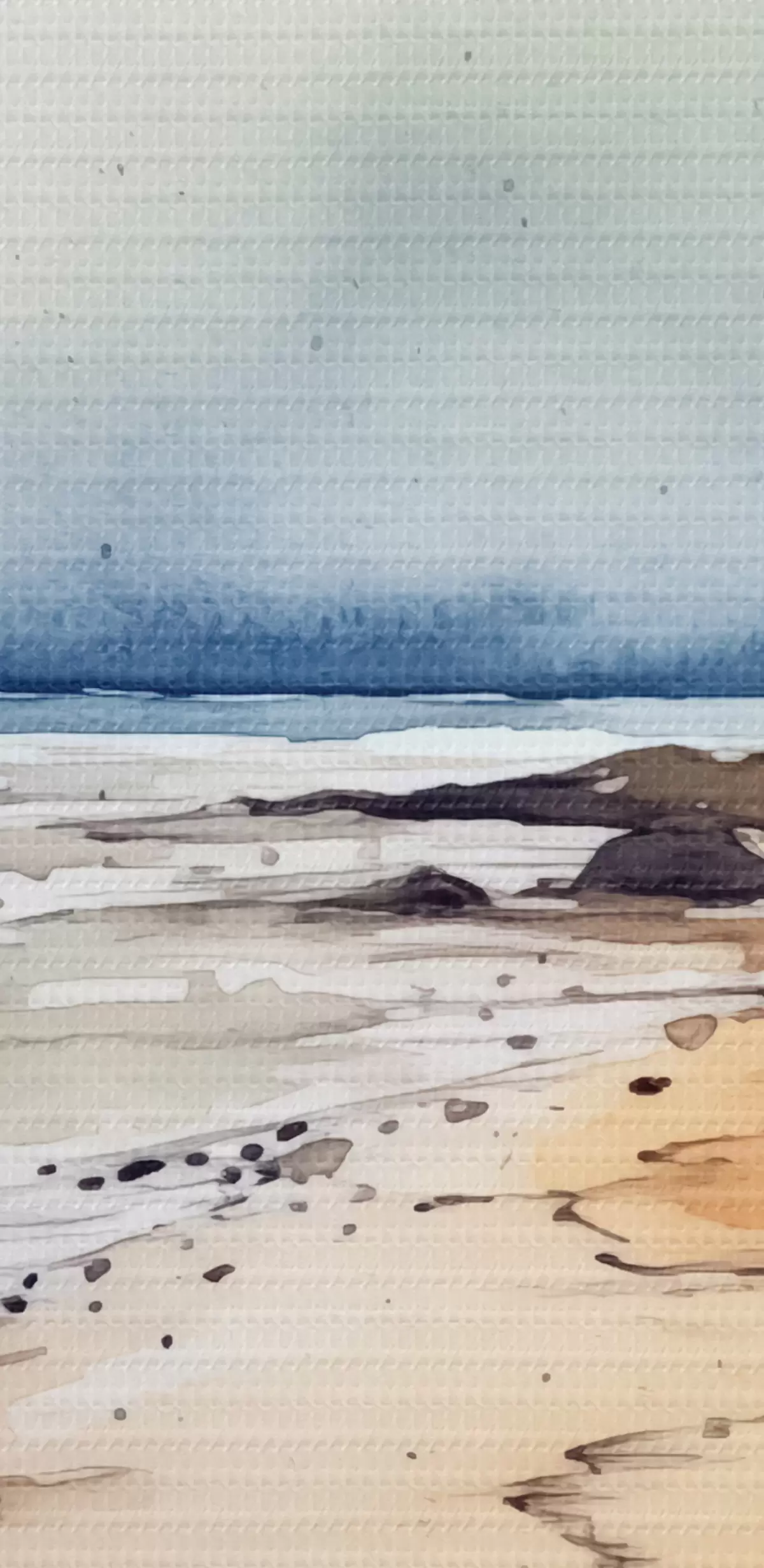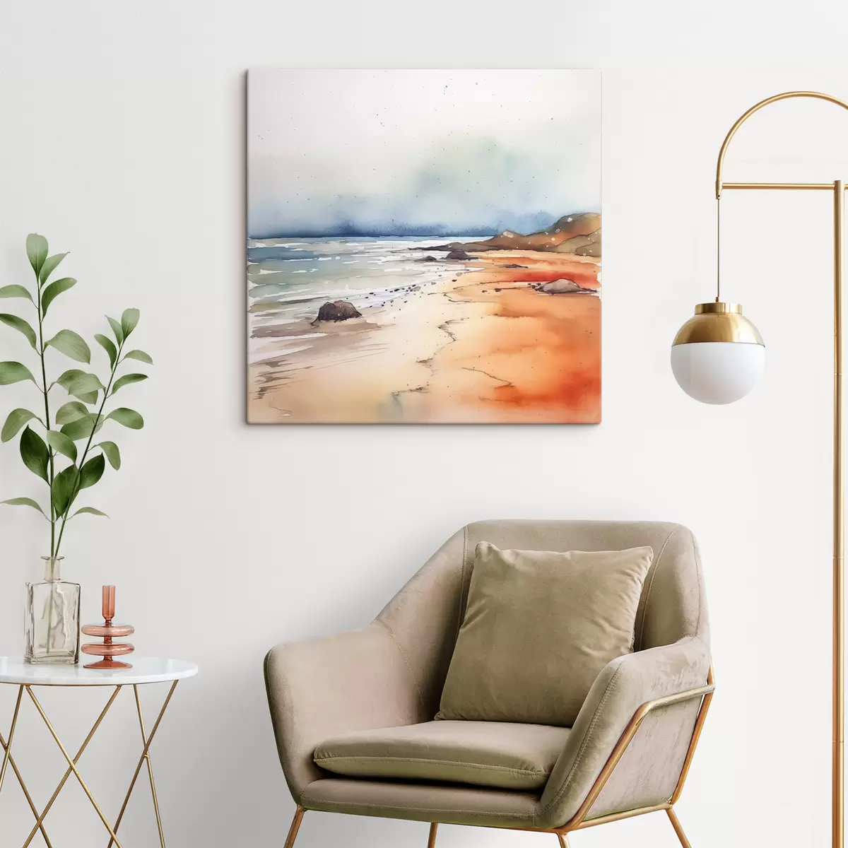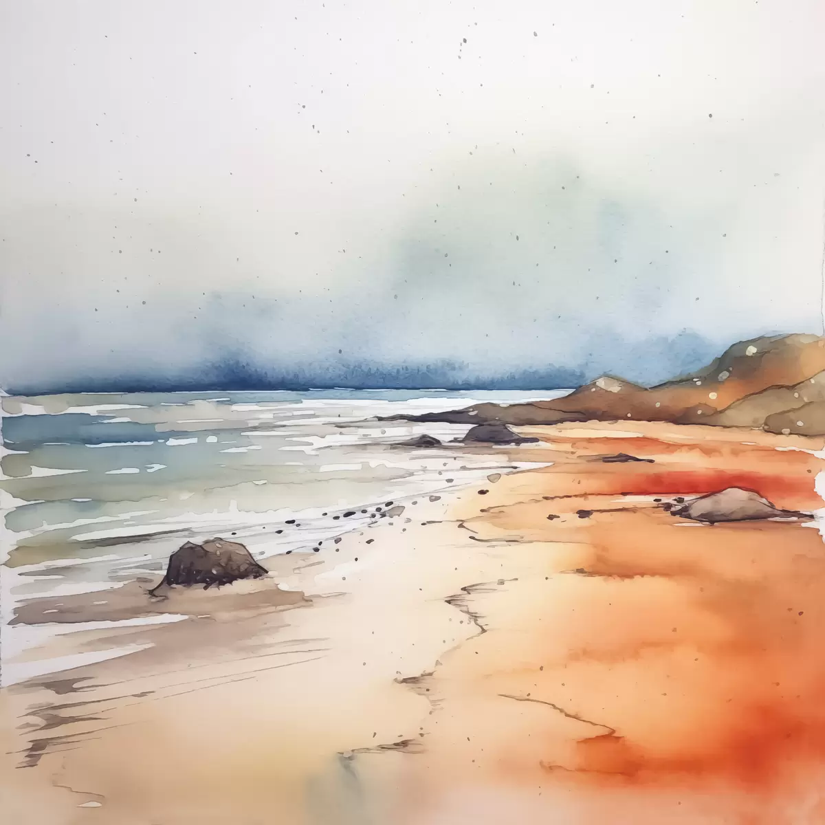 Maalid Meri ja rand, vihm, akvarell, pritsmed, maastik, maastik, sinine, oranž värv Nr s38936