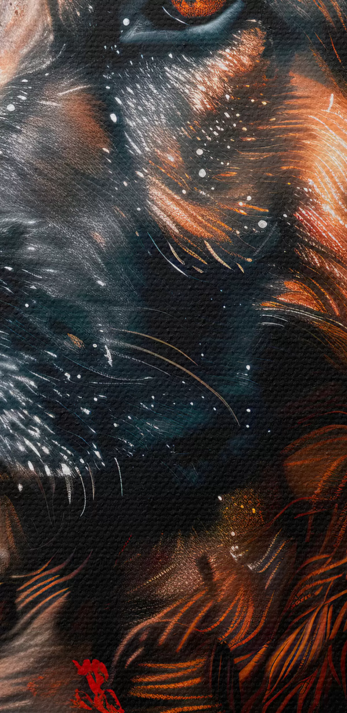 Selle lõuendi peenike niidipunus meenutab professionaalse kunstniku lõuendi pinda.