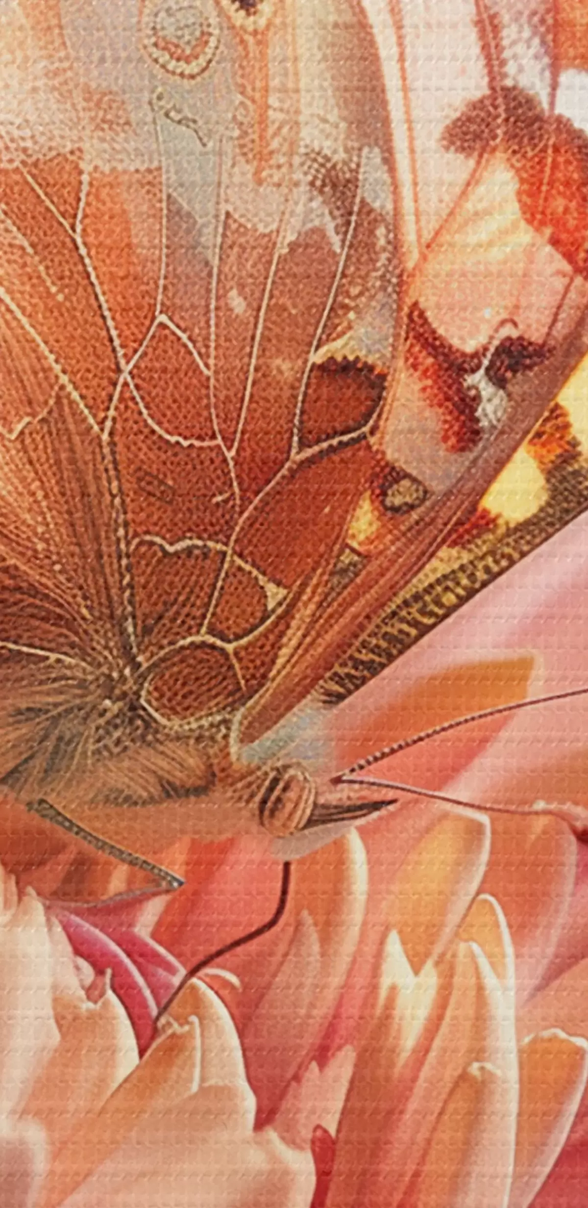 Selle lõuendi peenike niidipunus meenutab professionaalse kunstniku lõuendi pinda.