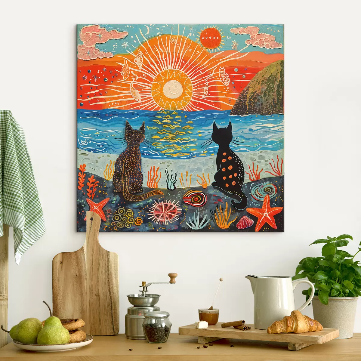 Maalid Kaks armsat kassi päikeseloojangul Nr s39080