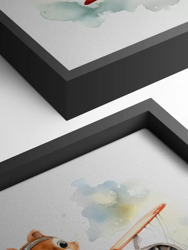 Maalid Oravapoeg lendab punases lennukis laste illustratsiooniga akvarell Nr s39116