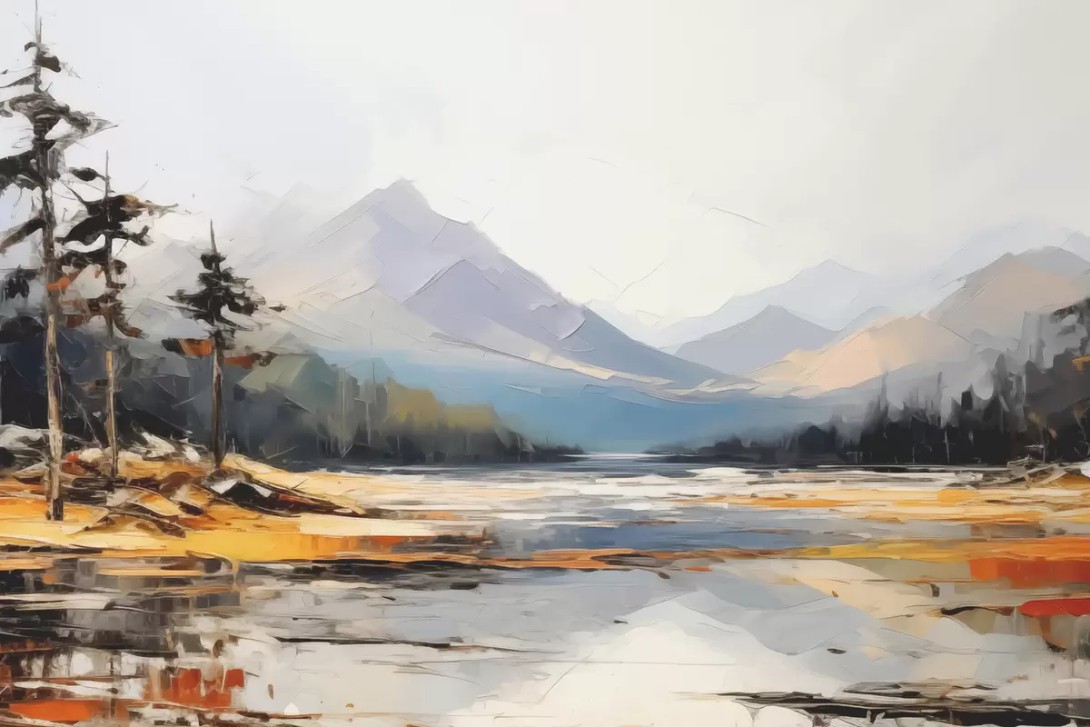 Maalid Mäeahelikud orus õlimaal, maastik, loodus, sinine, valge kollane värv Nr s39128