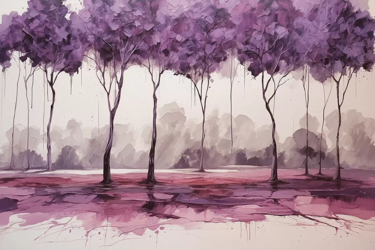 Maalid Purpursete lehtedega puud abstraktsel taustal Nr s39155