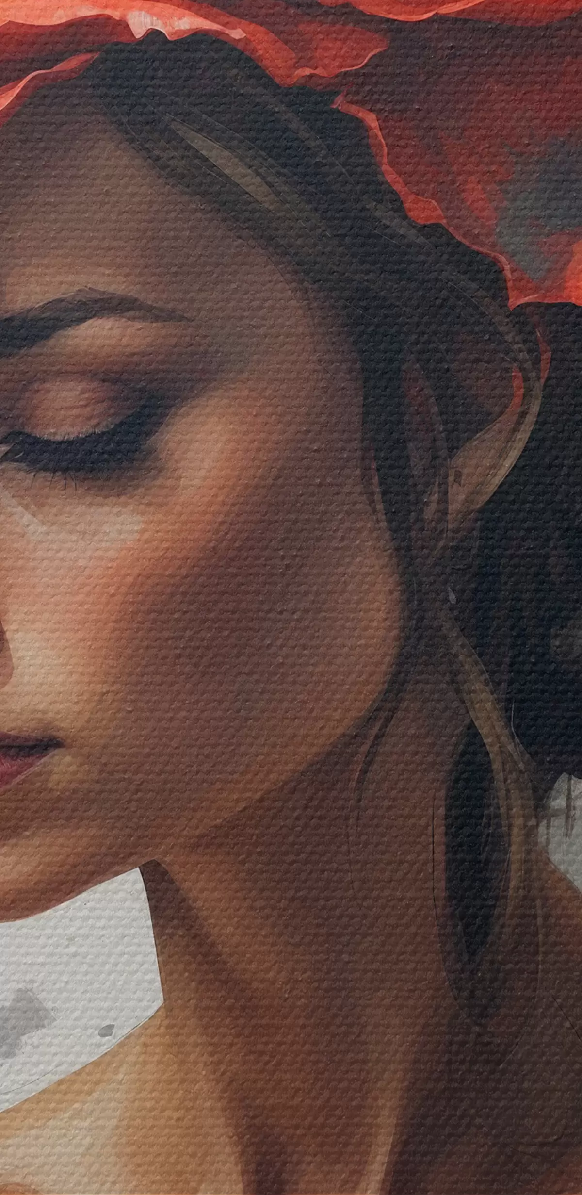 Selle lõuendi peenike niidipunus meenutab professionaalse kunstniku lõuendi pinda.