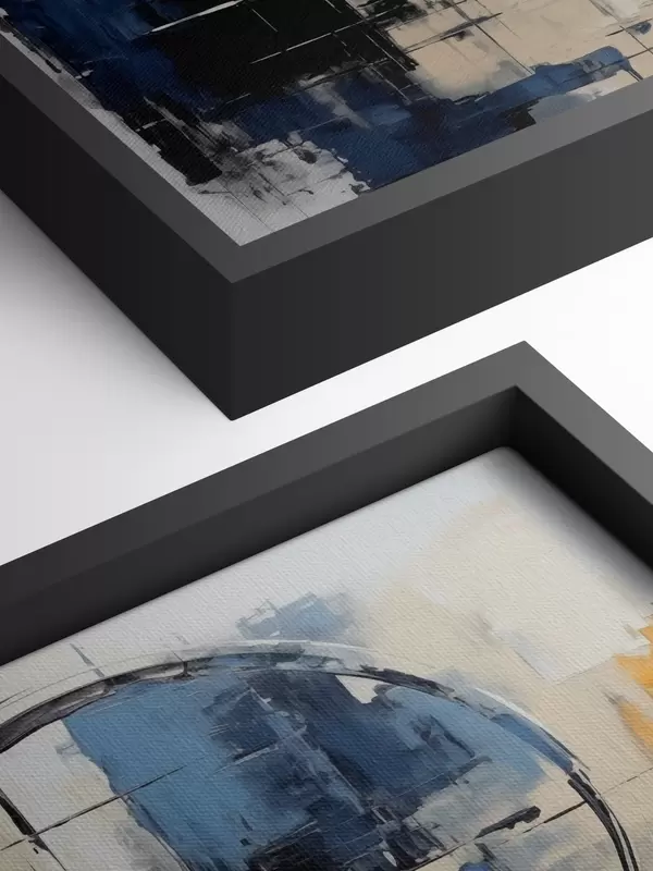 Maalid Abstraktne kubism, sinine, oranž, valge kriips, ringikujuline kujund Nr s39179
