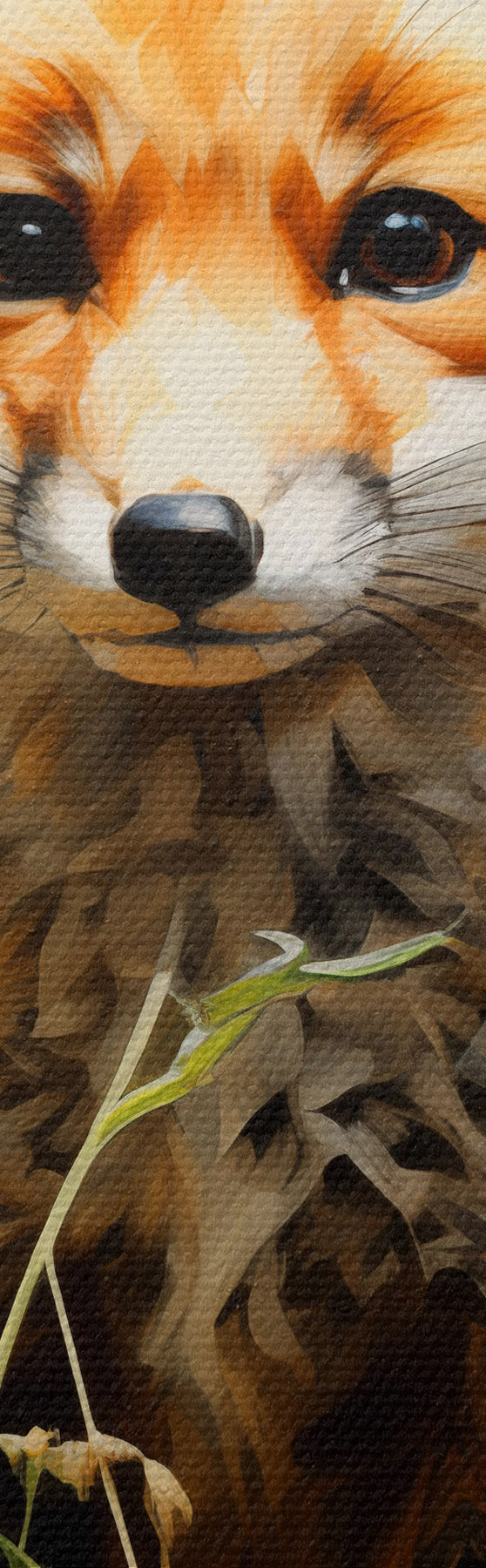 Maalid Punane rebane istub kuivas rohus rohelisel taustal õlimaal Nr s39191