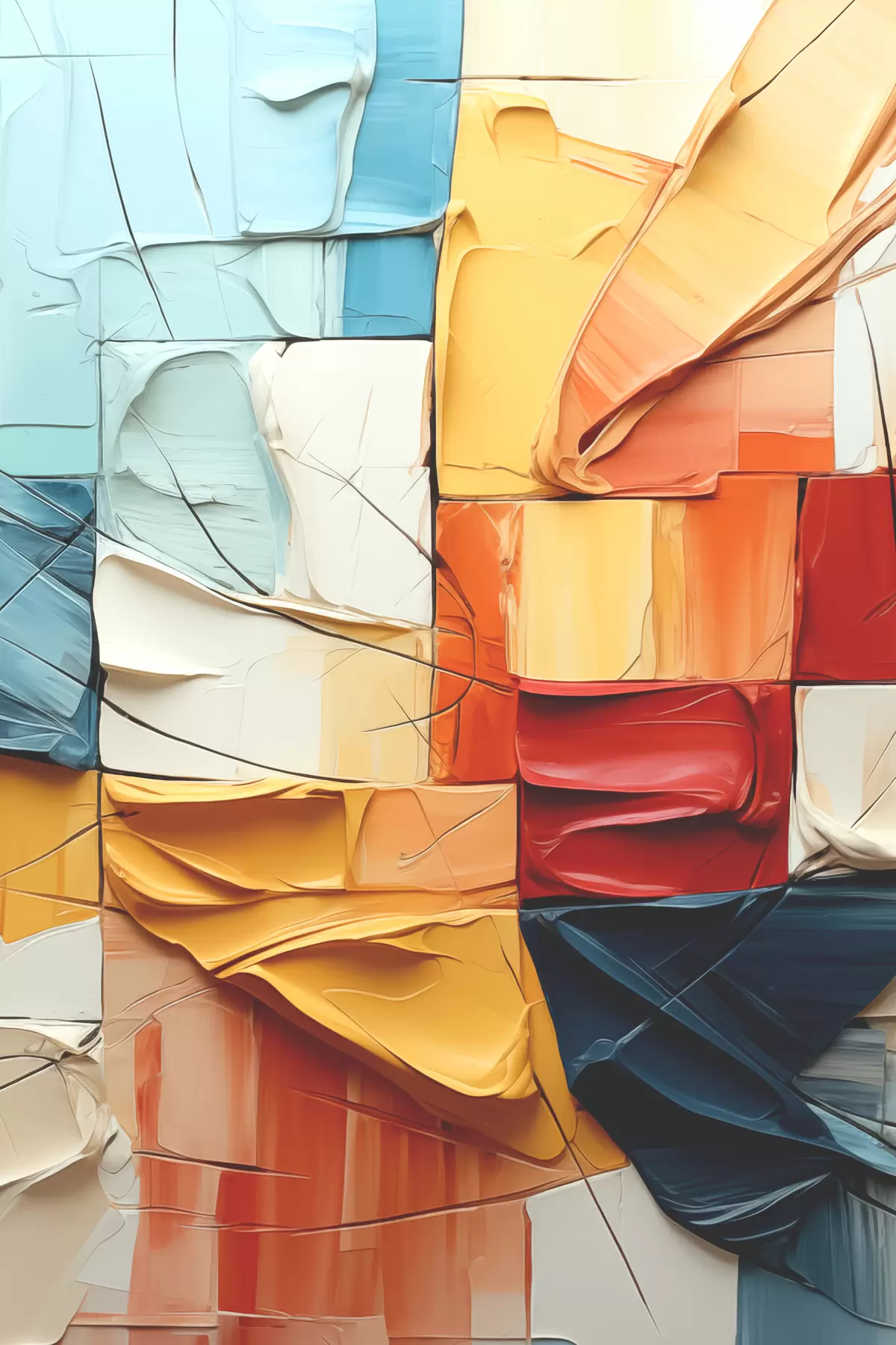 Maalid Erksa värvi tükid pragude, ruutudega, kubismimaal Nr s39196