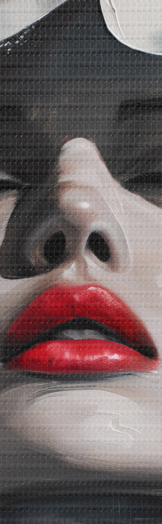 Selle lõuendi peenike niidipunus meenutab professionaalse kunstniku lõuendi pinda.