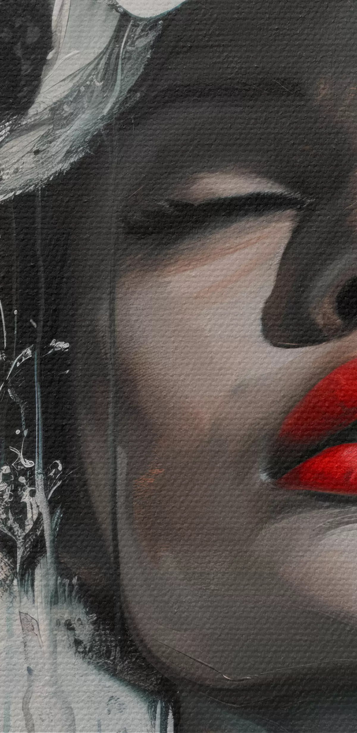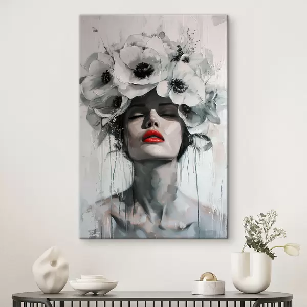 Maalid Lilledega juustes ja punaste huultega naise portree Nr s39253