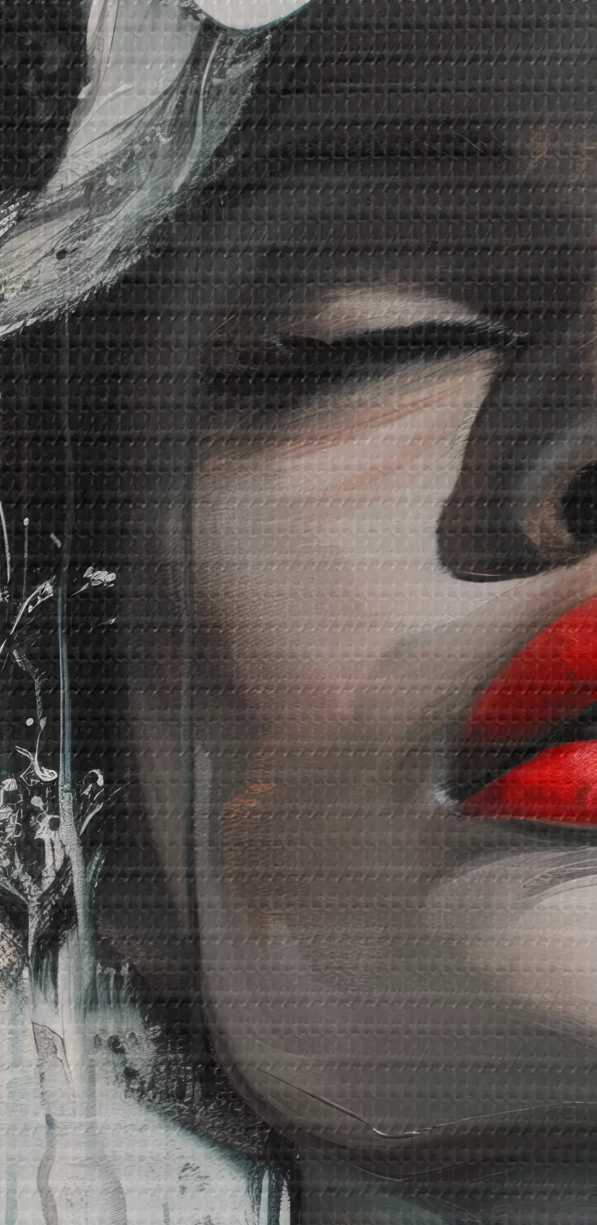 Selle lõuendi peenike niidipunus meenutab professionaalse kunstniku lõuendi pinda.