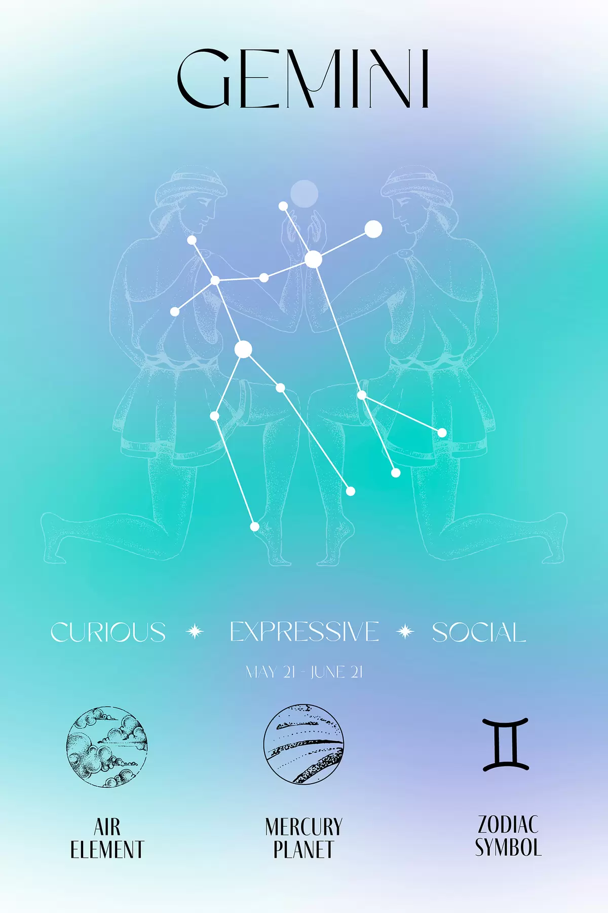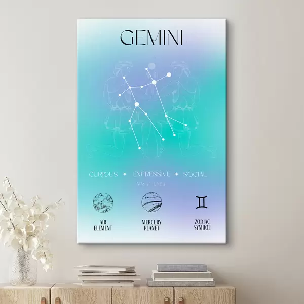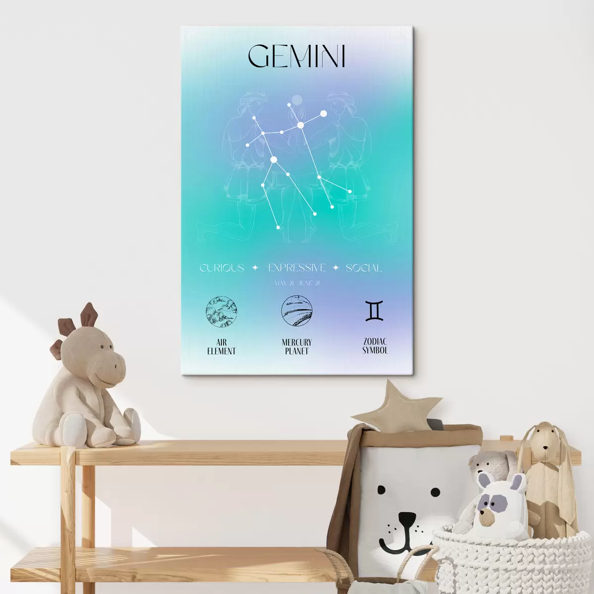 Maalid Kaksikute sodiaagimärk, tähtkujud, kosmiline, planeedid, astroloogia, sinised ja lillad värvid Nr s39279