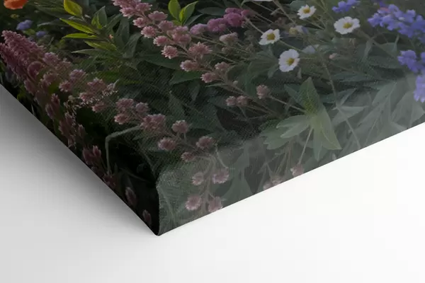 Maalid Mägimaastik, mille esiplaanil on värviliste metsalilledega täidetud heinamaa Nr s39382