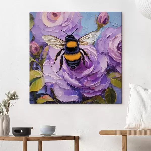 Maalid Mesilane roosadel pojengidel, värvilised suvelilled, õlimaal, erksad pintslitõmbed Nr s39411