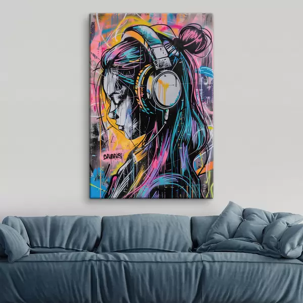 Maalid Graffiti stiilis kõrvaklappidega naine Nr s39443