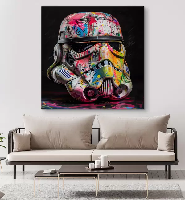 Maalid Star Warsi tormiväe kiiver, mis on kaetud elava tänavakunsti ja grafitiga Nr s39453