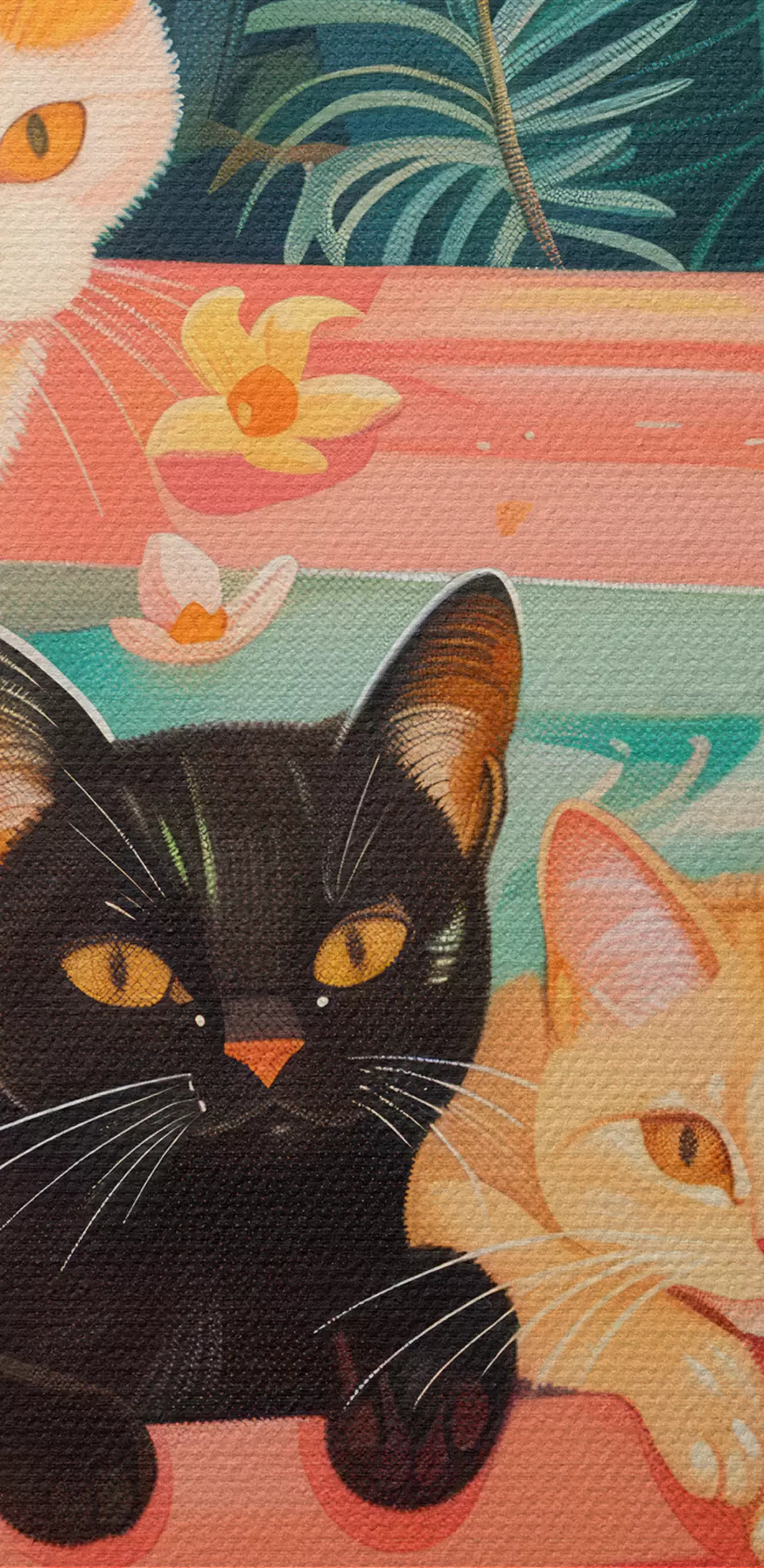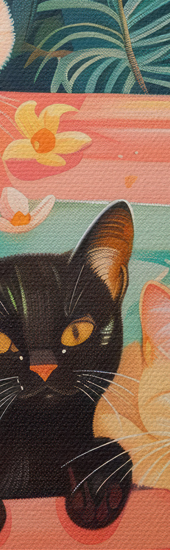 Maalid Kassid roosas vannis roheliste lehtedega, džungli atmosfäär Nr s39465