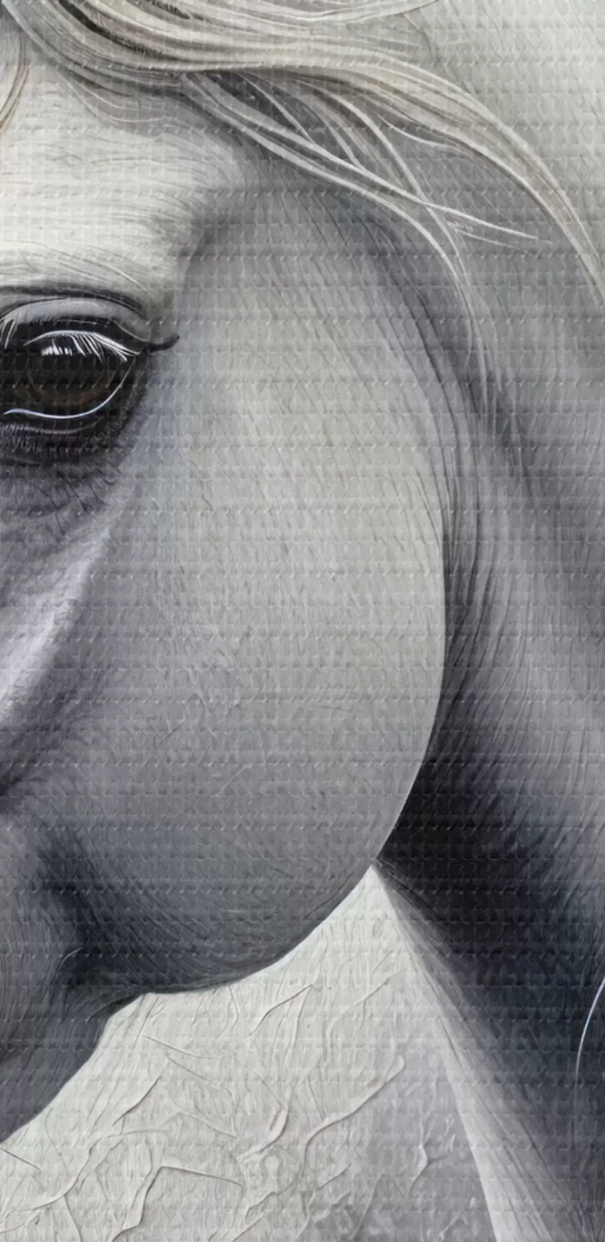 Selle lõuendi peenike niidipunus meenutab professionaalse kunstniku lõuendi pinda.