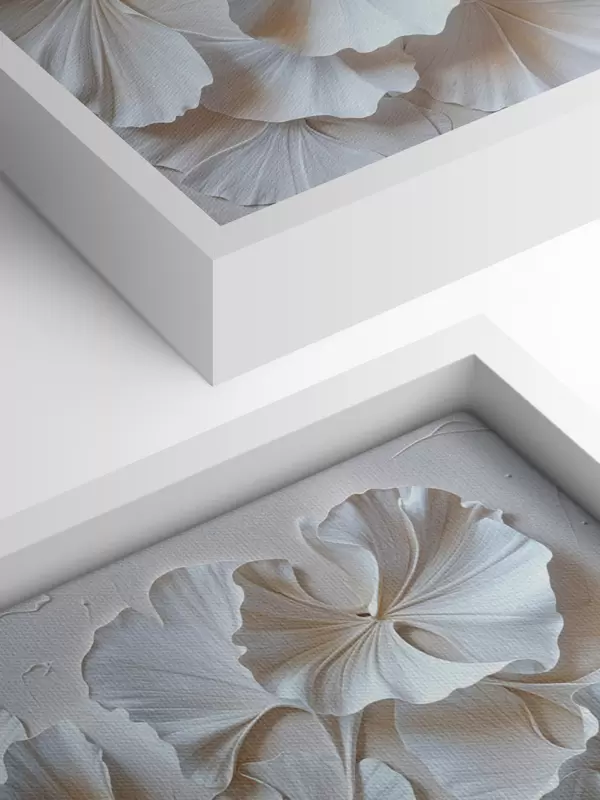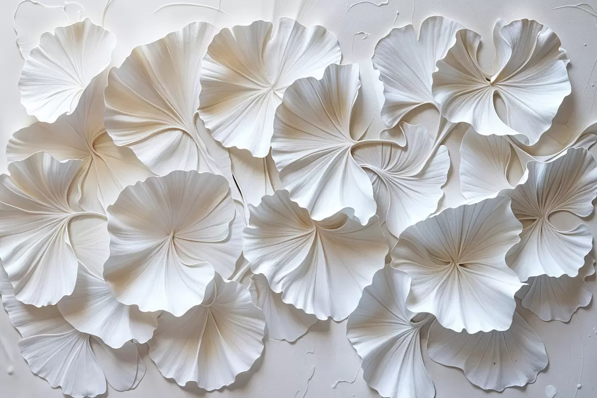 Maalid Õrnad valged lilled, mis asetsevad heledal taustal loomuliku orgaanilise mustriga Nr s39510