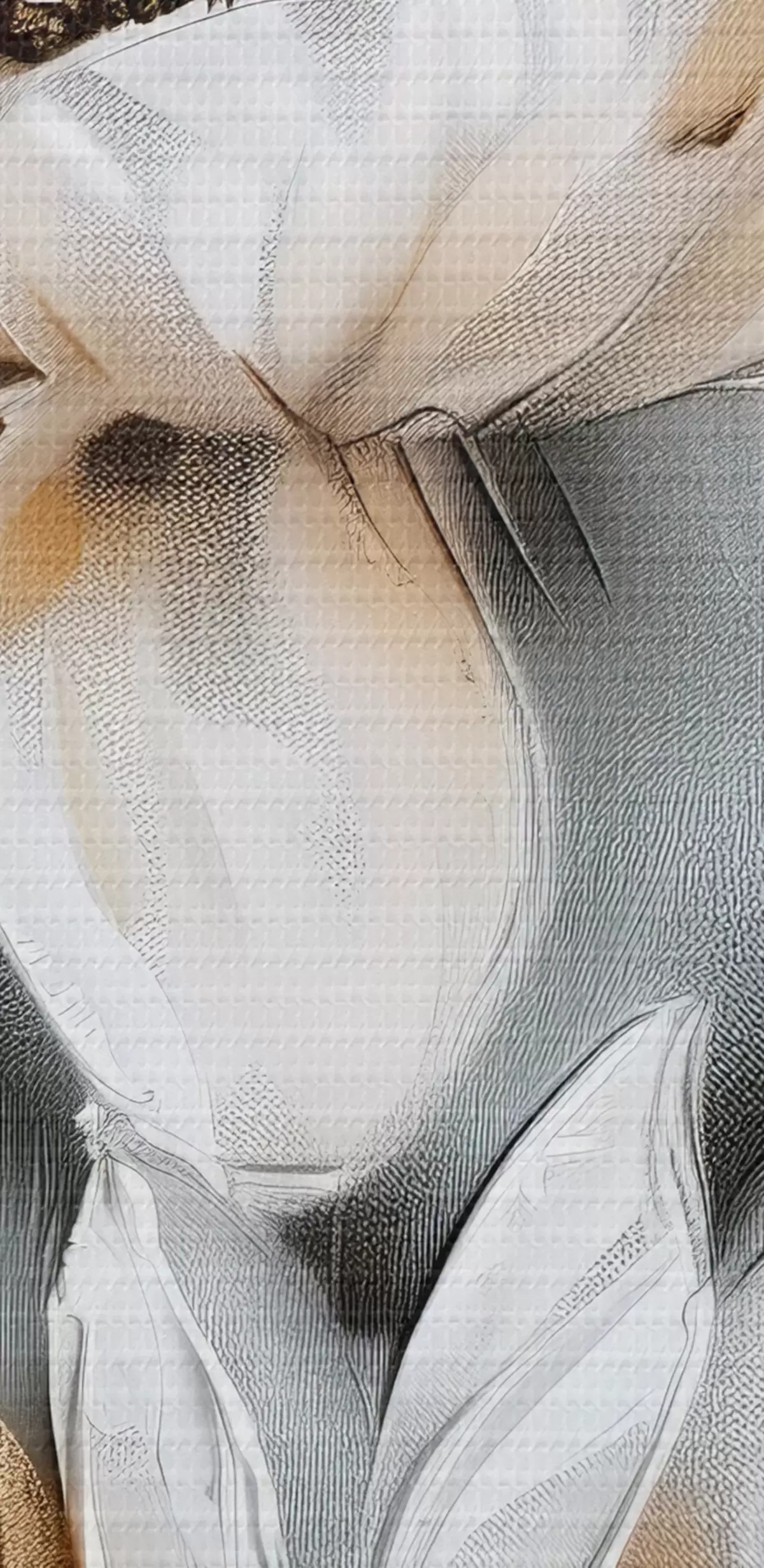 Selle lõuendi peenike niidipunus meenutab professionaalse kunstniku lõuendi pinda.